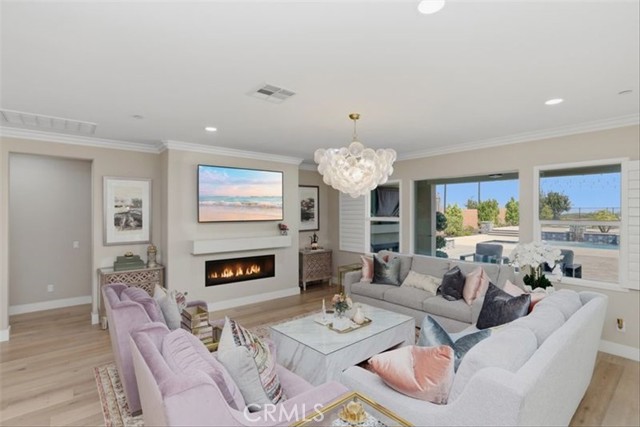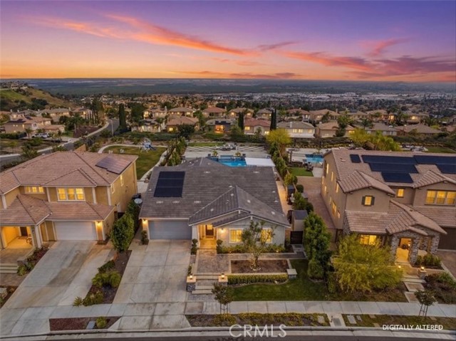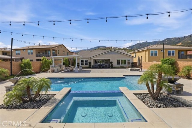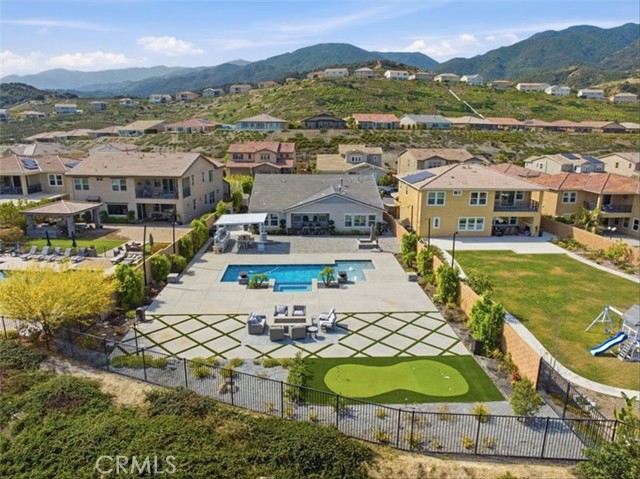 Welcome to this exceptional single-story home located on one of the most desirable lots in the gated community of Sierra Bella. Situated on over 1/3 acre of flat, usable land, this property offers a rare combination of privacy, space, and sweeping views—featuring city lights to the rear and the natural beauty of the Cleveland National Forest in front. The backyard is thoughtfully designed for both relaxation and entertaining. Enjoy a saltwater pool and spa with waterfalls and custom lighting, a covered California room, built-in BBQ area, wet bar with refrigerator, and a spacious firepit lounge. At the back of the property, the firepit area offers truly unique 360-degree views—creating a private setting to take in both the surrounding hills and city lights. The expansive lot also includes a putting green, surround sound system, and multiple seating areas, making the outdoor space both functional and inviting. Plumbing is already in place for a future backyard bathroom, adding even more flexibility. Inside, the home features a highly upgraded interior with hardwood flooring throughout, crown molding, plantation shutters, and a custom-built home office. The open floor plan centers around a gourmet kitchen equipped with GE Monogram appliances, a large quartz island, white shaker cabinetry, and ample space for gathering. Additional upgrades include a whole-house soft water system, reverse osmosis drinking water in the kitchen, energy-efficient LED lighting throughout with color-changing and smart automation features, and futures in place for a full exterior bathroom at the side of the home. The home also includes a leased solar system (9 panels) for added energy efficiency and cost savings. The primary suite offers a comfortable and private retreat with a spacious walk-in closet, dual vanities, and a soaking tub. This home combines quality upgrades, a functional layout, and a standout lot in one of the area’s most sought-after communities—ideal for both everyday living and entertaining. Close to the Green River exit for close proximity to Orange County. https://vimeo.com/1156549689?fl=tl&fe=ec