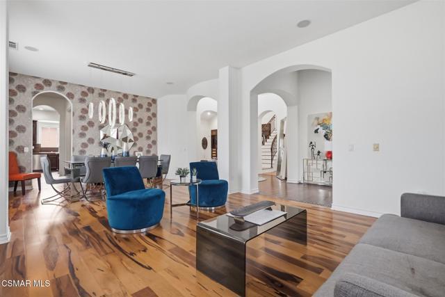 Set on a quiet cul-de-sac in the highly desirable Rancho Paso Fino community, this exceptional Chatsworth residence offers a rare blend of privacy, scale, and resort-style living--backing to a vast agricultural parcel with unobstructed views of the Santa Susana Mountains and striking natural rock formations.Designed to elevate both everyday living and entertaining, the backyard unfolds like a private retreat. A pool with Baja shelf and spa anchors the space, complemented by a sports court, expansive lounging areas, and multiple settings to gather or unwind--all thoughtfully oriented to capture the surrounding natural beauty.A detached, open-concept casita with its own bath and closet adds a layer of versatility, ideal for guests, a home office, or extended stays.Inside, a formal entry introduces elegant living and dining spaces, leading into an oversized gourmet kitchen that serves as the heart of the home. Complete with a large island, abundant cabinetry, a butler's pantry, and a generous walk-in pantry, the kitchen flows seamlessly into the family room--both overlooking the backyard to create a natural indoor-outdoor connection.The main level features a spacious primary suite along with additional bedrooms and baths, offering comfort and convenience. Upstairs, private en-suite accommodations and a secondary living area provide flexibility for guests or multi-generational living.Additional highlights include dual garage configurations and a dedicated laundry room, all contributing to a home that balances functionality with refined design.Properties offering this level of privacy, flexibility, and resort-style amenities in Rancho Paso Fino are few and far between.