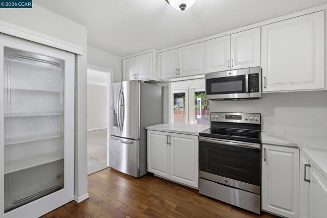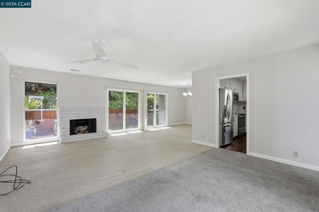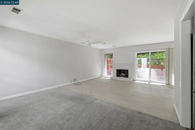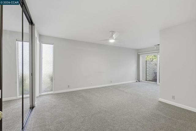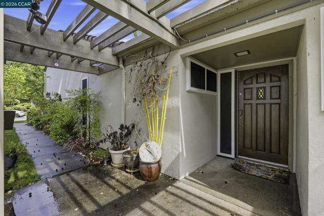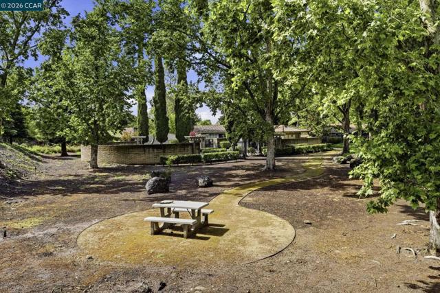 Rare no-step, single-story end-unit living—this light-filled and beautifully updated, this desirable end-unit offers a functional and inviting single-level layout. Featuring two bedrooms and two bathrooms, the home is centered around a stunning atrium that fills the space with natural light and creates a unique separation between living and sleeping areas. Brand-new carpet and industrial EVA flooring enhances the interior, while the updated kitchen features quartz countertops, stainless steel appliances, and a large picture window overlooking lush landscaping. The living room showcases expansive glass and a cozy gas fireplace, perfect for relaxing or entertaining. The spacious primary suite includes an ensuite bathroom and a private, enclosed patio. The second bedroom opens directly to the atrium, adding to the home’s airy indoor-outdoor feel. Additional highlights include excellent insulation and a newer roof, brand new windows and doors, specialized security screens, state of the art security system and brand new garage door. Residents enjoy access to three pools, walking trails, picnic areas, RV parking/storage, and beautifully maintained green space. First Open house Sunday 4/19