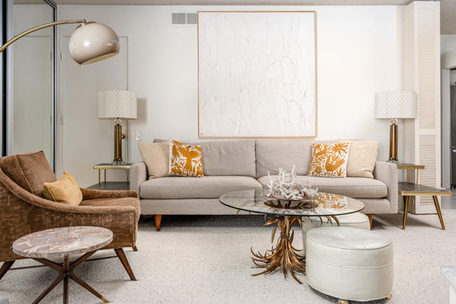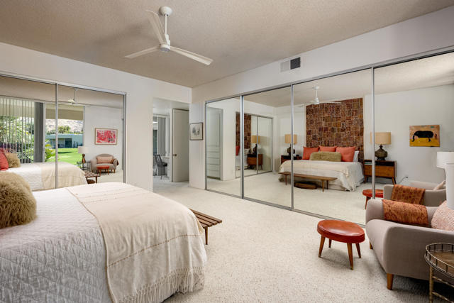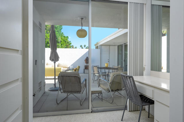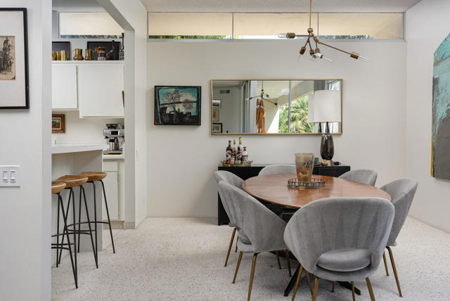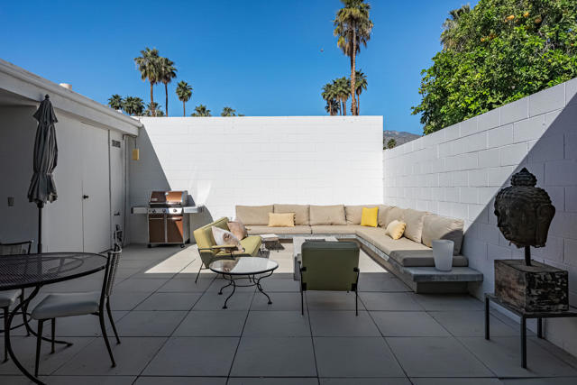 Welcome to an exceptional opportunity in the Seven Lakes Golf & Country Club--one of South Palm Springs' most sought-after guard-gated communities. Perfectly situated on the most centrally located street within Seven Lakes, this beautifully maintained two-bedroom plus den, two-bath residence offers the ideal blend of classic mid-century modern design and thoughtful system upgrades.Set along the 11th fairway of the Ted Robinson-designed golf course, the home enjoys breathtaking south-facing mountain views that create a stunning backdrop for everyday living. The expansive, updated courtyard is designed for both relaxation and entertaining, featuring pavers, a built-in fire pit, bench seating, and panoramic vistas of the surrounding mountains.Inside, the home reflects a true ''time capsule'' aesthetic--celebrating its mid-century roots while benefiting from key modern improvements. Recent upgrades include a newer HVAC system, roof, replaced main water line, updated internal plumbing, and water heater--providing peace of mind for years to come. The property also includes a private garage space for added convenience.An electrical panel replacement is currently underway, with permit pending through the City of Palm Springs, offering additional value and future readiness.The flexible floor plan includes a spacious den and an extended dining area, enhancing both livability and entertaining potential. Gently lived in and lovingly maintained, this home presents a rare chance to own a classic architectural gem with essential upgrades already completed.Experience the timeless appeal, vibrant community, and unparalleled lifestyle that Seven Lakes has to offer.Located behind The Parker Palm Springs and past the 24-hour guarded gate at Seven Lakes, 'The Gem of the Desert' offers a unique elevated lifestyle with its Ted Robinson-designed 18-hole executive golf course, 15 pools and spas tennis and pickleball. The iconic clubhouse, designed by celebrated mid-century architect William F. Cody, offers a private restaurant and bar, creating a vibrant social hub for residents and their guests alike. Additional community features include: electric vehicle charging stations, and the convenience of an on-site HOA office with a dedicated general manager and staff.
