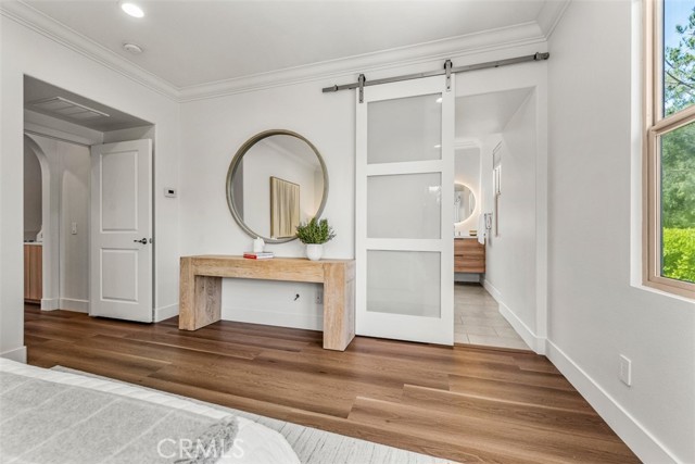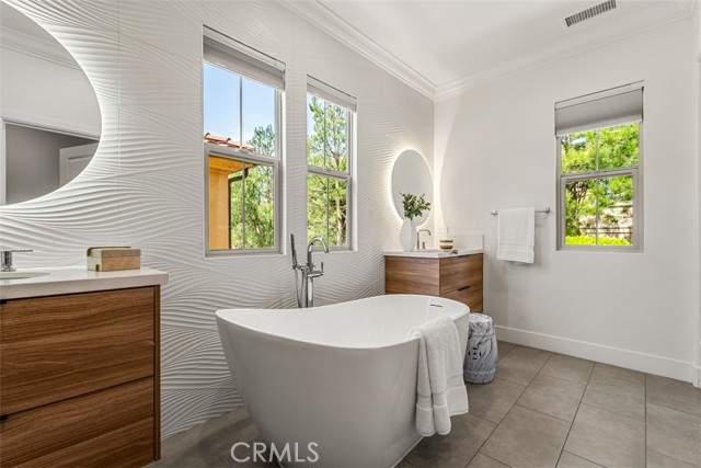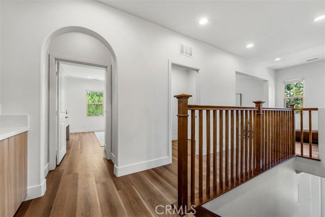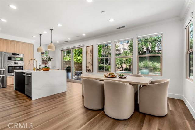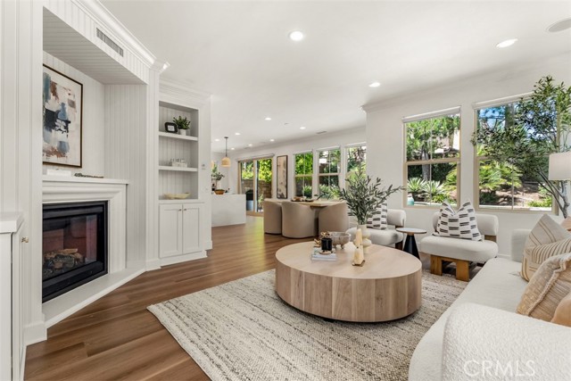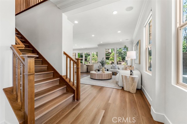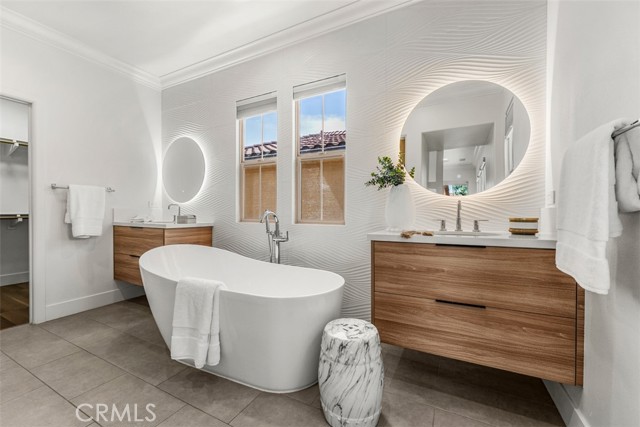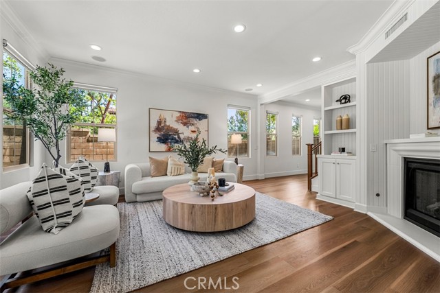 Set on a coveted corner lot within the Paloma enclave of Portola Springs, this extensively remodeled residence spans approximately 2,339 square feet of thoughtfully designed living space. Offering four bedrooms and three full bathrooms, the home unfolds through an open-concept floor plan where the living, dining, and kitchen areas flow effortlessly together. Abundant natural light fills the interiors, enhancing wide-plank flooring and refined designer finishes throughout. The kitchen features Silestone counters, Wolf and Bosch stainless steel appliances, custom cabinetry, Porcelanosa tile backsplash, and a waterfall-edge eat-in island beneath pendant lighting. Sliding glass doors invite you to a resort-inspired backyard where a private pool and water feature sit nestled within lush, mature landscaping — a true retreat from the everyday. A main-level bedroom, currently serving as an office, is situated alongside a remodeled bath with a walk-in shower, dual shower heads, and a backlit mirror, allowing for flexible use as guest space or a workspace. Upstairs, three bedrooms surround a versatile loft that functions well as a secondary living area, media space, or lounge. The primary suite is positioned as a private retreat featuring a spa-inspired bath features dual vanities, a freestanding soaking tub, and a spacious walk-in shower, complemented by a large walk-in closet. Completing the second level is a dedicated laundry room with built-in cabinetry and sink. Life in Portola Springs is defined by its balance of natural setting and everyday convenience—set against scenic foothills with miles of walking and biking trails, while offering access to multiple resort-style pools, parks, sports courts, and community spaces throughout the village. Highly regarded Irvine Unified schools, nearby shopping centers including Woodbury Town Center, and convenient access to major freeways position the home within one of Irvine’s most sought-after master-planned communities.