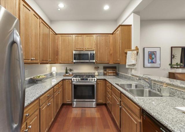 Tucked away in a centrally located, intimate neighborhood, 6 Flora Lane provides a perfect spot to settle in, surrounded by lush landscape and vibrant scenery. This Scotts Valley townhome is designed for comfortable living and easy entertaining, featuring vaulted ceilings throughout and an open-concept layout. The interior is anchored by hardwood flooring, and a cozy fireplace, creating a warm, inviting atmosphere that overlooks the verdant greenery surrounding the home. The lifestyle here is all about convenience and community. Just a short stroll away is the vibrant Skypark, the heart of Scotts Valley. Youll have front-row access to year-round events, including the famous Food Truck Fridays, outdoor movie nights, and holiday festivals. Skypark also offers a premium skate park, tennis courts, a playground, and expansive dog-friendly lawns. Beyond the park, you are minutes from the areas best shopping, dining, and cinema. This location is a commuters dream with quick access to Highway 17, making the drive to Silicon Valley a breeze, while the beaches of Santa Cruz and redwood forests of the San Lorenzo Valley are only a short ten-minute drive away. Experience the perfect balance of mountain-like privacy and urban convenience in this exceptional Scotts Valley gem.