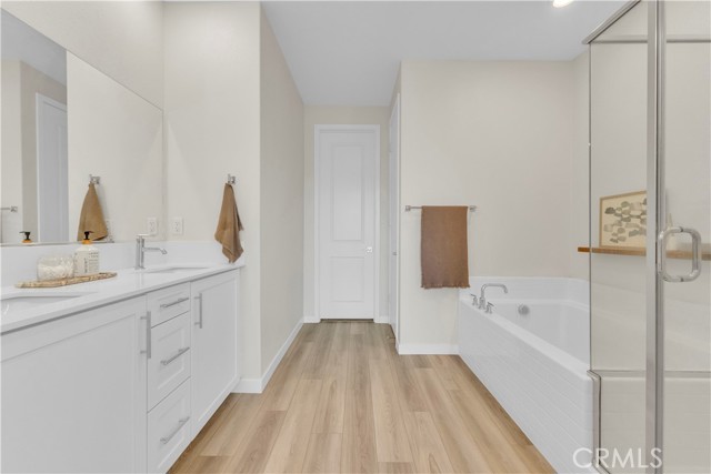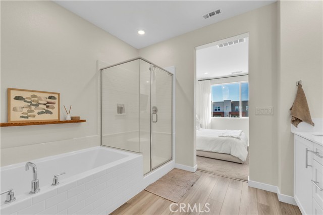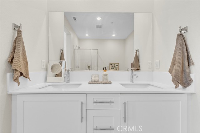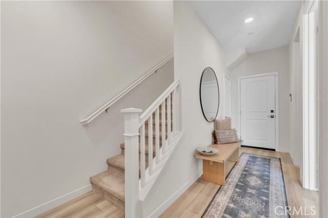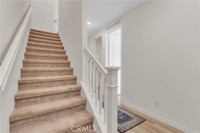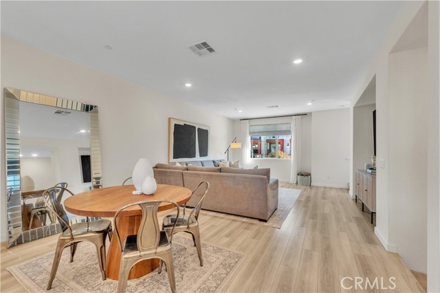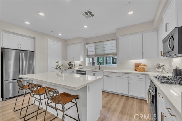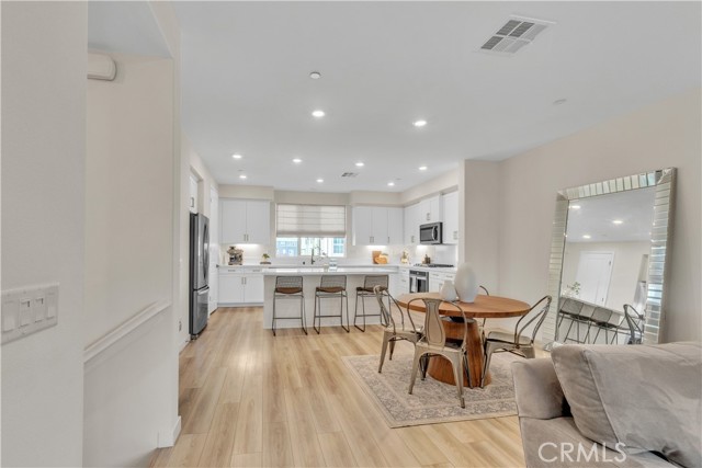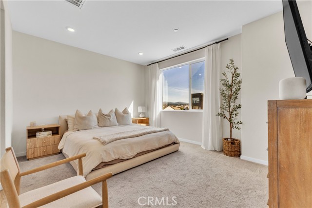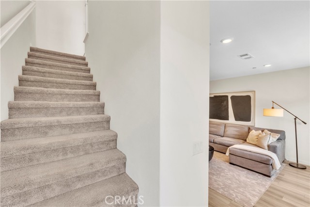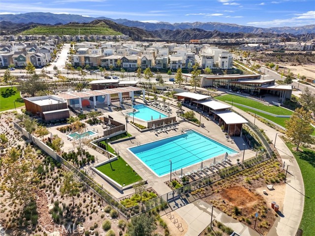 Seller's Current FHA Loan at 4.75% Interest Rate May be Assumable! Experience exceptional modern living in the highly coveted FivePoint community of Valencia. Built in 2022, this tri-level townhome blends contemporary luxury with everyday comfort. Set in a prime location with inviting views, this light-filled 3 bedroom, 3.5 bathroom residence offers approximately 1,840 square feet of thoughtfully designed living space. The main level showcases an open-concept great room with living and dining areas that flow seamlessly into a sun-drenched kitchen. Enjoy a spacious center island, stainless steel Whirlpool appliances, walk-in pantry, Quartz countertops, and crisp white cabinetry. Wide-plank wood-like flooring and abundant natural light create a warm, tranquil atmosphere throughout. The upper level hosts the elegant primary suite, complete with plush carpeting, a generous walk-in closet, and a spa-inspired bathroom featuring dual vanities, a separate shower, and a soaking tub. An additional ensuite bedroom and a convenient laundry closet with side-by-side washer and dryer complete this floor. The lower level offers a charming entry and a versatile third bedroom, ideal as a family room, office, gym, or guest space and with sliding glass doors opening to the front courtyard. This level also includes a full bathroom with walk-in shower and direct access to the attached two-car garage. Designed for today’s lifestyle, the home includes eco-friendly upgrades such as solar panels, an Ecobee thermostat, EV charger, water filtration system, and a tankless water heater, enhancing both convenience and sustainability. Residents of FivePoint enjoy an array of resort-style amenities, including multiple pools and spas, a clubhouse, parks, sport courts, scenic hiking and biking trails, a community greenhouse, and the Community Center. All of this is just minutes from Confluence Park, major roadways, freeways, Magic Mountain, shopping, dining, and award-winning schools.