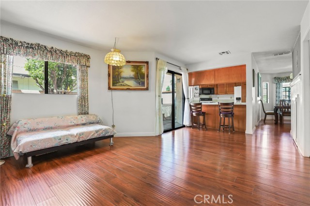 This elegant two-story PUD features Spanish-inspired architecture with a tile roof, brick accents, and a grand double-door entry. Hardwood floors flow throughout, complementing soaring vaulted ceilings and a stunning marble fireplace in the spacious living room. The main level offers an open layout connecting the living room, dining area, and kitchen with generous oak cabinetry and a full appliance suite — plus a convenient powder room. Upstairs, the primary suite provides a peaceful retreat alongside two additional bedrooms and a full hall bathroom. Out back, enjoy a private patio with terracotta pavers and a covered pergola — perfect for relaxing or entertaining. Ideally located in sought-after Temple City, close to top-rated schools, dining, shopping, and freeway access. A must-see!