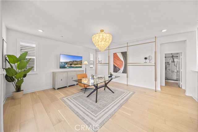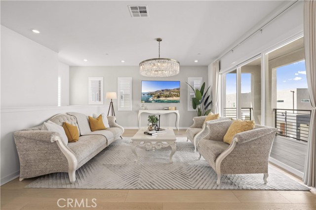 Premium Location | Garden View | Move-In Ready | Over $150K in Upgrades Ideally situated next to a beautifully landscaped community garden, this stunning home in Solis Park offers peaceful views and an exceptional living experience. The open and functional floor plan features 4 bedrooms and 3 full bathrooms, offering nearly 3,000 sq ft of living space. Enjoy two covered balconies and a private front yard, perfect for seamless indoor-outdoor living. The third-floor bonus room provides flexible space for a home office, gym, or entertainment area. Abundant natural light fills the home through multiple windows and expansive sliding glass doors, creating a bright and airy atmosphere. This move-in ready home showcases over $150,000 in upgrades, including thick engineered wood flooring, luxurious custom crystal chandeliers, custom wood shutters and designer drapery, elegant wallpaper accents, and upgraded bathrooms, all thoughtfully curated to create a refined and sophisticated living environment. Additional features include a finished garage with epoxy flooring, whole-house water softener and filtration system, Tesla EV charger, solar system, and security camera system. Select custom furnishings may be included, offering a truly move-in ready, turnkey opportunity. Step outside and enjoy a stroll through the charming garden just beyond your front door, and take full advantage of Great Park’s exceptional amenities, including multiple parks, playgrounds, basketball courts, tennis courts, hockey rink, clubhouses, scenic trails, pools, and spa facilities. Located within the highly acclaimed Irvine Unified School District, with walking distance to Solis Park School (TK–8) and Portola High School.
