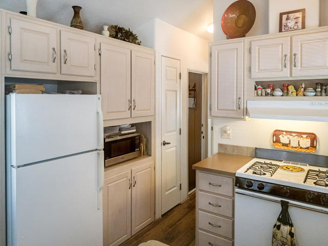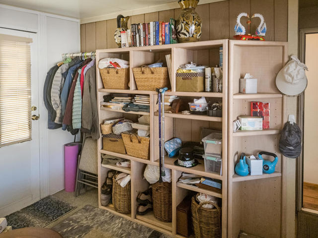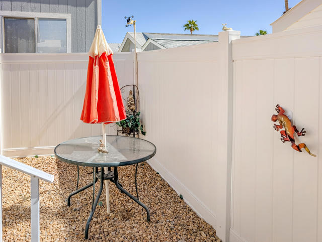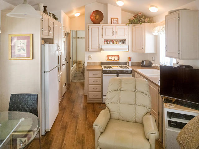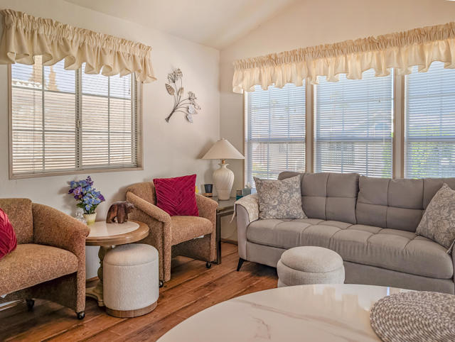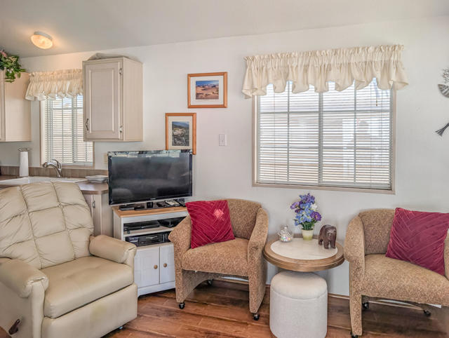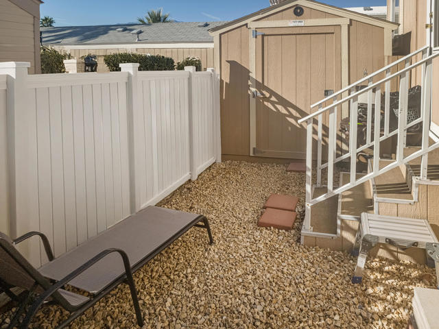 This splendid and super clean 2003 Cavco Park model with ~550 sq. ft. features 2 bedrooms, 1 bathroom and a laundry room in the shed. Bring your creative flair and make this well-appointed home your dream getaway with stunning views from the front covered deck of little San Bernadino Mountains where you can enjoy your morning coffee or unmatched sunsets. The California room is currently being utilized as a 2nd bedroom/office. Ample parking for 2 dedicated spots. Located in the luxurious 55+ Caliente Springs Resort which offers amenities that include mineral hot spring pool and spas, state of the art fitness center, 9-hole golf course, pickleball courts, tennis courts, laundry facilities, library, and fun organized community events. Beyond the comfort and amenities of the home itself, residents of Caliente Springs Resort enjoy a vibrant, welcoming atmosphere where neighbors become friends, and every day brings new opportunities for relaxation and recreation. Whether you're seeking peaceful mornings on the deck, social afternoons on the pickleball courts, or quiet evenings at the library, this community is designed to enrich your lifestyle and provide endless possibilities for leisure and connection in a picturesque desert setting. Come make this your new home or getaway place and enjoy this amazing community. Lot is not owned; space rent is $673.