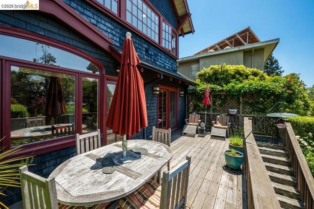This elegant 1909 Arts & Crafts home in desirable North Berkeley blends vintage character with modern comfort, Bay views, and seamless indoor/outdoor living. Featuring 3 bedrooms and 2.5 baths, the sun-filled interiors include a gracious living room with gas fireplace, formal dining room with gas fireplace, built-in seating & cabinets, family room and an updated sun-kissed kitchen with breakfast area opening to a spacious deck and landscaped backyard with beautiful garden beds and fruit trees. Upstairs offers a generous primary suite with Bay views, radiant-heated bathroom floor and walk in closets, a generous hall bathroom & 2 other bedrooms. Additional highlights include balcony off the east bedroom, original details, and updated heat pump/AC (2024). The expansive basement with conforming ceiling height and garden access offers excellent potential. Ideally located near the North Berkeley Gourmet District, including Chez Panisse, Cheese Board, plus parks, pathways, and BART. Home Energy Score of 7. Disclosures: https://app.disclosures.io/link/1408-Arch-Street-3ap1qy7c