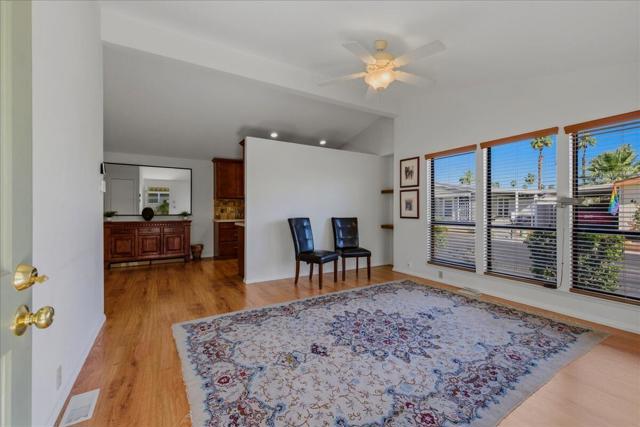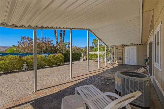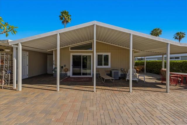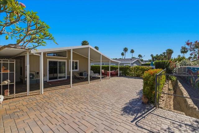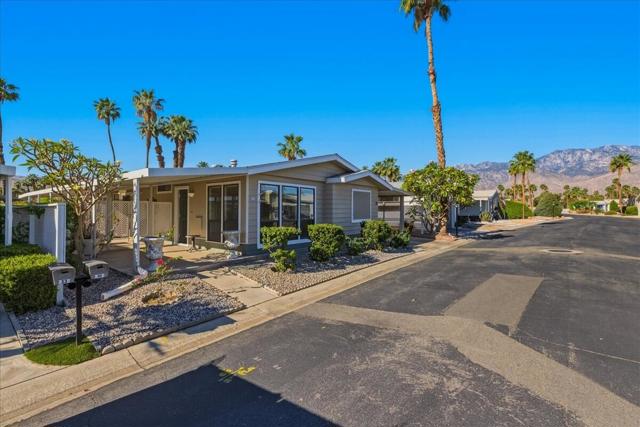 Entertainer's Delight, This updated 2 BD/2BA Mobile Home has been remodeled with New Kitchen featuring stainless Refrigerator, Stove and Microwave. As you enter, the Living Room is light and leads to Dining area and Kitchen. The Primary Bedroom has a nice triangle clerestory window and slider to the rear yard. The Primary Bath has been updated with tiled walk in shower, dual vanities and extra storage space. The Guest Bedroom has a hall bath with step-in shower and a separate slider to the side patio area. There is Vinyl Flooring throughout the entire home. There is also a full-sized Washer and Dryer in Hall Closet. The Rear Patio has had an extension covering added and has a completely bricked back yard which will hold 20-30 guests comfortably. Wonderful Southern and Western Mountain Views. There is a covered carport for two cars and a large storage closet at the end of the carport. This unit is located in a quiet section of the community. The Canyon is centrally located in the Valley and has easy Freeway access on Gene Autry Trail or Date Palm Dr. We are near shopping, entertainment, PS Int'l Airport and 10-12 Min. to Downtown Palm Springs! The Canyon features only Full-Time Residence or Second Homes. We have wonderful park like greenbelt grounds with Tennis & Pickleball. Our clubhouse boasts an upgraded Banquet Hall, Gym, Card Room and Library along with 4 Enclosed Heated and Cooled Shuffleboard Lanes, Two pools and a Spa. You will need to qualify as a resident with 3 times space rent $950 = $2850 along with a FICO score of 750. One domestic animal of 20 lbs unless it is a Service Dog. The Canyon is the place to be for 55+ Adult Lifestyle Living. Make an OFFER Today!!