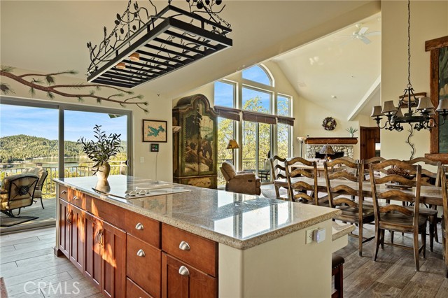 Incredible LAKE VIEWS from this AMAZING 6 BEDROOM HOME with Just the Right Amount of Rustic & Modern! Welcome to the ELK VIEW LODGE!!! You Will Love the Soaring High Ceilings with a Wall of Windows Looking Out to the Views of Almost All of Lake Arrowhead, Complete with Distant Panoramic Ridgeline Views too! So Much Character Here and the Elbow Room Between Living Areas was So Well Though Out. The Kitchen is Perfect for Those that Love to Cook with Sooo Much Space and Cabinetry! The Oversized Breakfast Bar and Huge Dining Area are Amazing for Entertaining and Big Families!! Off of the Living Room is a Fantastic En Suite Bedroom and Behind the Dining Area is an Office & Bunk Room with Bath for the Kiddos! Downstairs is a Lovely Grand Entrance with Split Floor Plan & Access to the Garage. The Primary Suite Has a Gorgeous Fireplace and Private Deck to Enjoy the Views! Soak in the Jetted Tub or Enjoy a Long Hot Shower in the Master Bath, Complete with Bidet. Next Door is a Lovely Office/4th Bedroom with Sink Area & Cabinetry. Two Additional Bedrooms & a Bath are Situated on the Other Wing. Downstairs is an Oversized Game Room Area with Den, Wine Room and Access to the Fenced BackYard! Just a Hop, Skip and a Jump to the Lake!! Walk to the Marina or Drive 5 Minutes to the Lake Arrowhead Village or a Day of Adventure at Skypark! Just 20 Minutes to Our Local Ski Resort, Snow Valley! SO MUCH TO DO in Beautiful Lake Arrowhead!!! And this is the Perfect Home for You with Room for Everyone & Lake Views!!