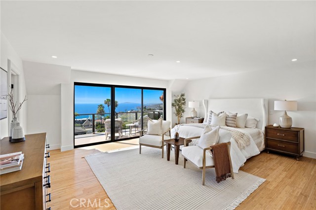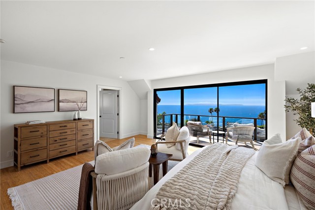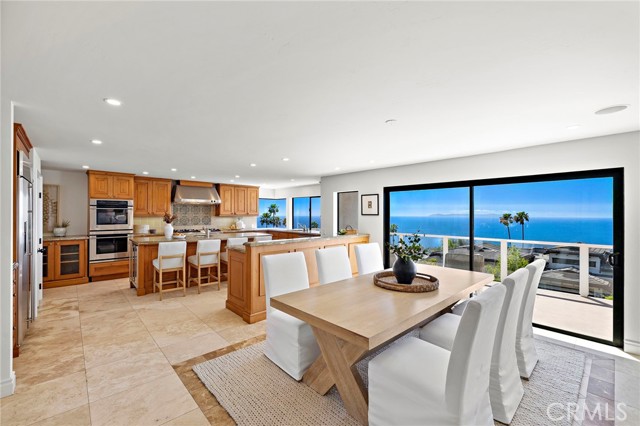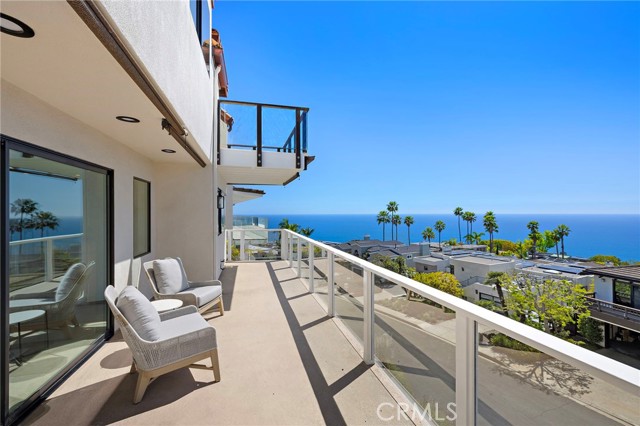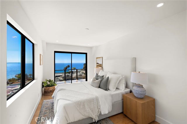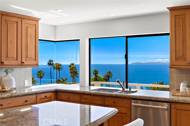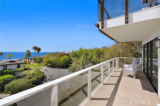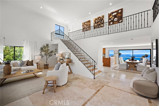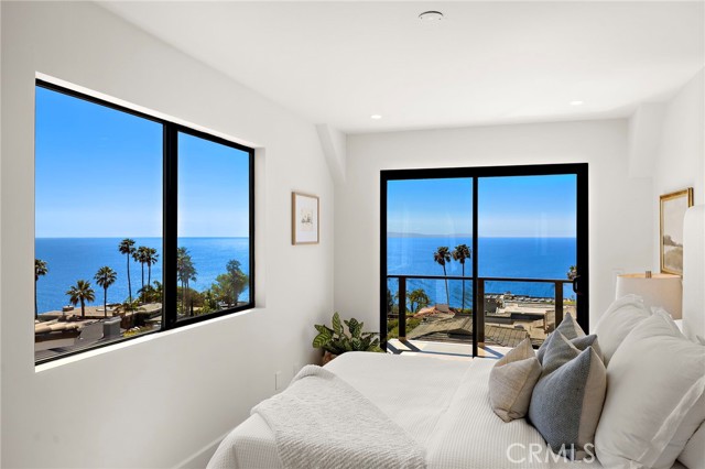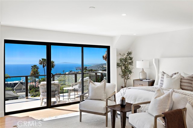 Experience sweeping, white water and coastline views from this beautifully appointed Mediterranean residence, located in the coveted hillside Portafina neighborhood of Laguna Beach. Showcasing breathtaking panoramas that span from San Clemente to Catalina Island and all the way to Palos Verdes and the Santa Monica Mountains, the home captures the essence of coastal living from nearly every vantage point. A private courtyard entry introduces the home, leading into a light-filled formal living room with soaring ceilings and marble flooring. French doors open directly to the courtyard, creating a natural indoor-outdoor flow, while one of the home's three fireplaces anchors the room with warmth and character. The kitchen, dining, and family room come together as one cohesive space, creating an easy, natural flow throughout the main level. The kitchen is perfectly positioned to take in the view, featuring a generous center island with breakfast bar, ample storage, and uninterrupted ocean vistas. It opens to the dining area and adjacent family room, where a second fireplace and a wall of windows frame the Laguna coastline beyond. Sliding doors open to an expansive deck, ideal for entertaining or simply taking in the ocean breeze and endless sunsets. Upstairs, a striking wrought iron staircase leads to four bedrooms, all finished with rich bamboo flooring. The primary suite is a true retreat, offering mesmerizing views, a private ocean-facing deck, and its own fireplace, creating a quiet, elevated escape. The en-suite bath continues the experience with unparalleled views, a spacious walk-in closet, soaking tub, and separate walk-in shower. Located just down the street from Moulton Meadows Park, offering tennis, pickleball, basketball, a dog park, playgrounds, and scenic hiking, and just moments from Victoria Beach, Laguna Coast Wilderness Park, the iconic Montage Resort, and Laguna’s renowned dining and gallery scene, this home truly offers the best of coastal living.