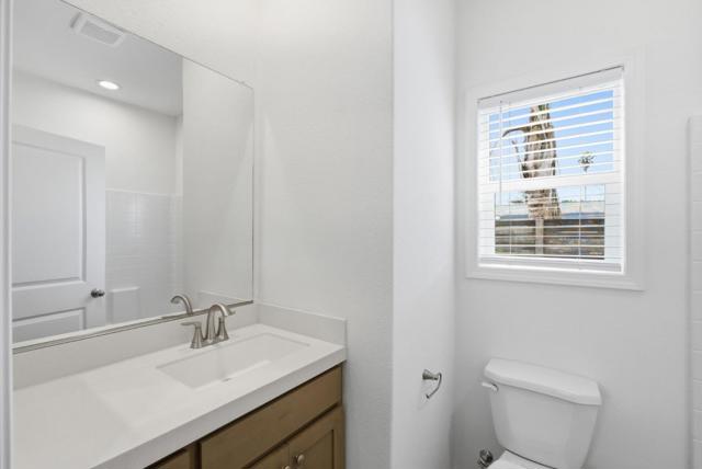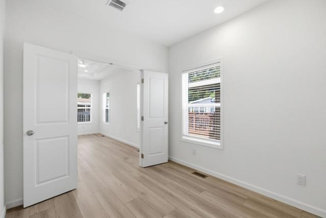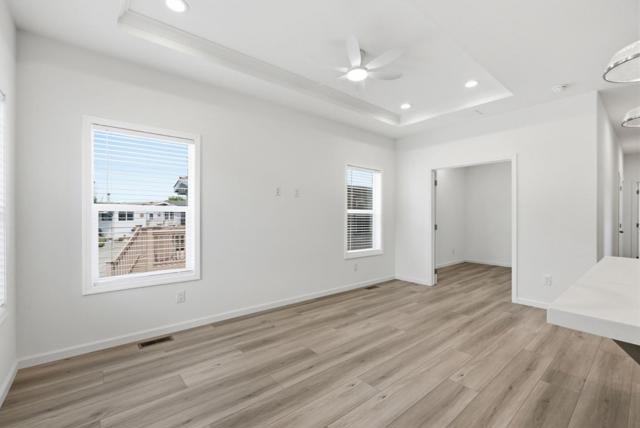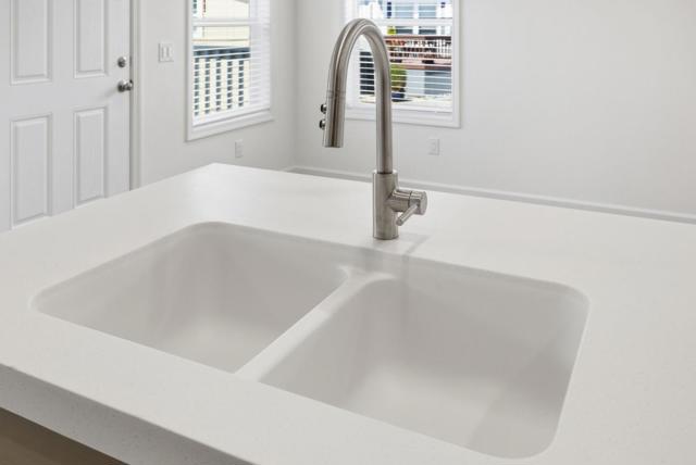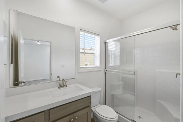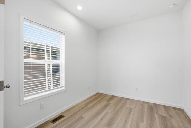 New 2026 home in Shoreline Estates, a 55+ community in Live Oak. 2-bedroom, 2-bath floor plan with den, open living area, recessed ceiling detail, recessed lighting, ceiling fan, and wide-plank flooring in the main living spaces. The kitchen includes an island with a sink, bar seating, gray cabinetry, and stainless steel appliances. The utility room offers a laundry area and extra storage. Bathrooms feature quartz-style counters, and the hall bath includes a tub/shower combo. Near Sunny Cove Beach, local restaurants, shops, breweries, and the Live Oak/Eastside Farmers' Market. Easy access to shopping and Highway 1.