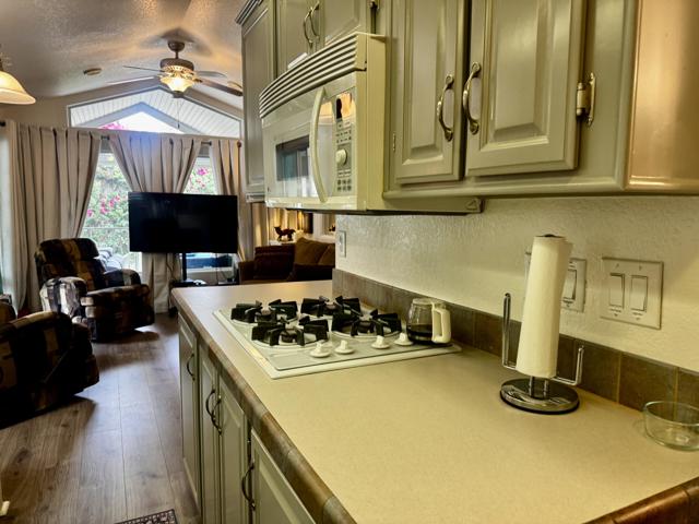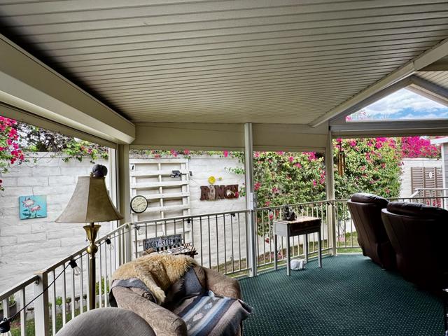 Outstanding 2004 Cavco park model situated on a desirable private lot in the highly sought-after Rancho Casa Blanca community. This well maintained home features covered parking and a spacious deck with convenient auto roll down shutters perfect for enjoying outdoor living year round.A washer and dryer are located in the shed for added functionality, along with additional storage space. Inside, the home offers tile flooring throughout, creating a clean and comfortable feel. The kitchen and bathroom feature multiple upgrades , and the bathroom has been tastefully updated. The generously sized bedroom provides ample storage, making this home both practical and inviting.Rancho Casa Blanca offers resort-style amenities including free golf year round, a fully equipped fitness center, pickleball and tennis courts, and multiple pools and spas. Residents also enjoy a bocce ball court, billiard room, and horseshoe pits, along with two large clubhouses and four satellite buildings hosting over 60 clubs and classes. The community is guard-gated with security patrol for added peace of mind.Whether you're looking to stay active or relax, this vibrant community has it all and with a golf cart, you can easily explore and enjoy everything it has to offer.