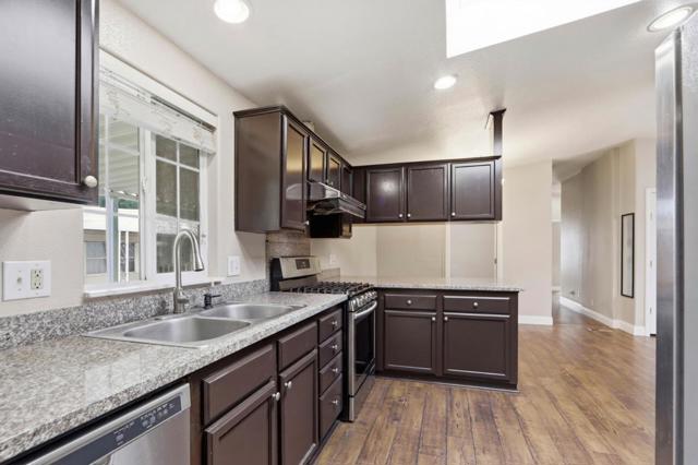 Rare opportunity in the highly desirable Mary Manor Estates! This beautifully maintained 2007 Waterford home, thoughtfully designed split floor planfeaturing three bedrooms on one end and a private primary suite on the other for optimal comfort and privacy. Step inside to find stylish Pergo flooring throughout and tastefully updated bathrooms. The spacious kitchen is equipped with granite countertops, stainless steel appliances, a pantry, and a bright eat-in dining area enhanced by a skylight and overhead lightingperfect for everyday living and entertaining. The primary suite serves as a relaxing retreat, complete with dual sinks, granite countertops, a medicine cabinet, and a luxurious bathroom featuring both a soaking tub and separate shower. Additional highlights include double-pane windows throughout, a generous 3-car carport, a storage shed, and a side yard offering added outdoor space. Ideally located with close proximity to shopping, major freeways, top-rated schools, and leading high-tech employers, this home provides an easy commute to Mountain View, Cupertino, Los Altos, Santa Clara, and Palo Alto.Dont miss this exceptional opportunity to own a beautiful home in a charming and well-established communityperfect for creating lasting memories.