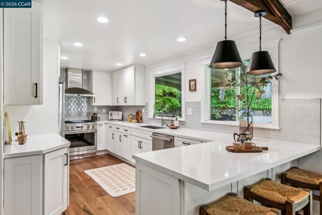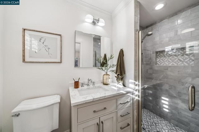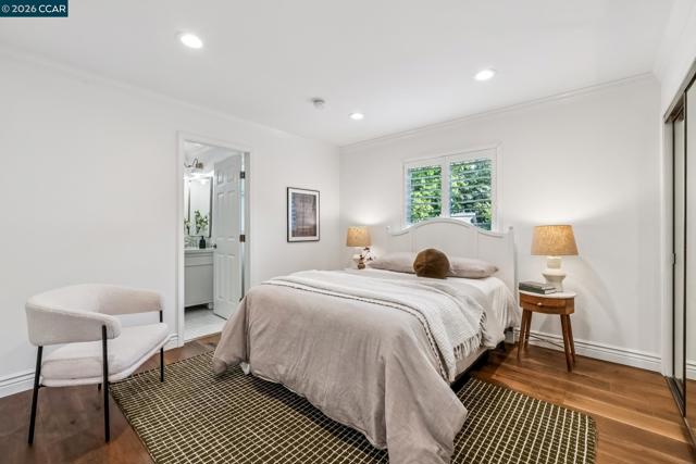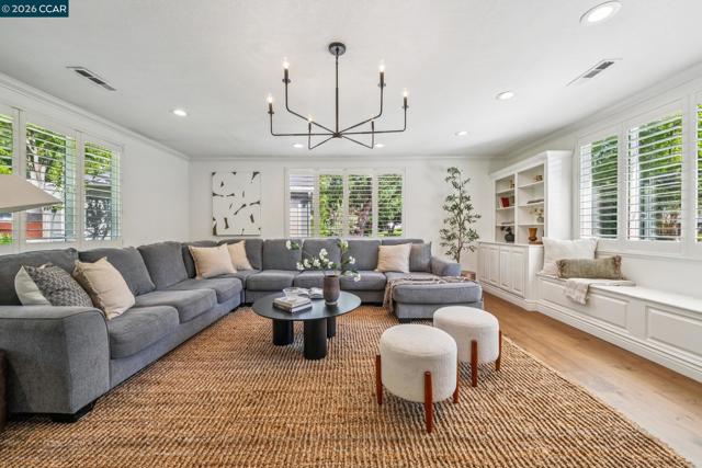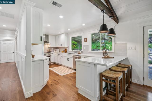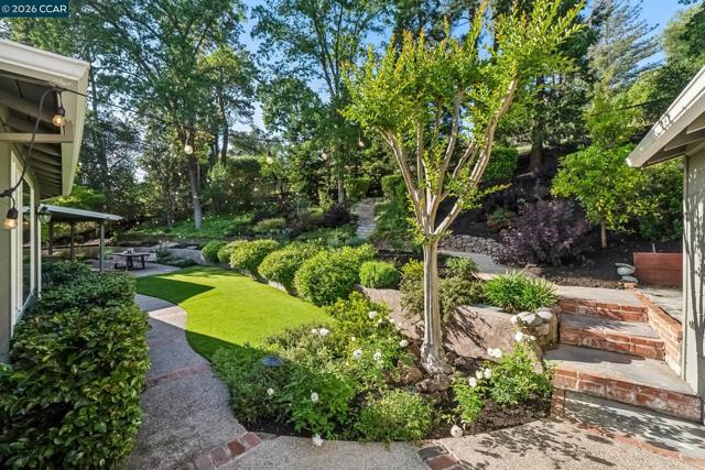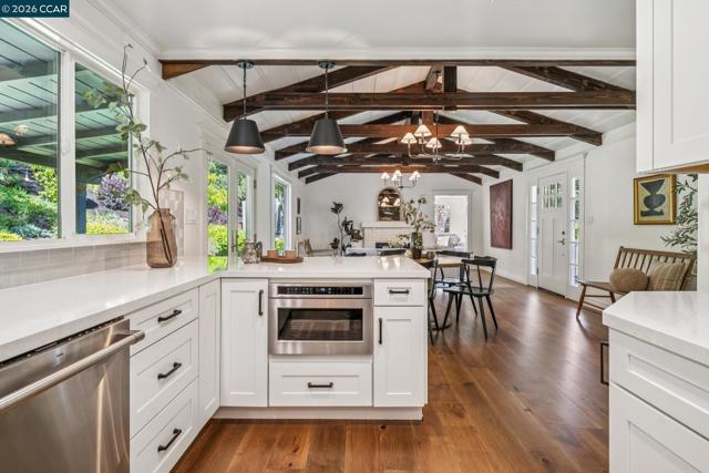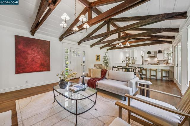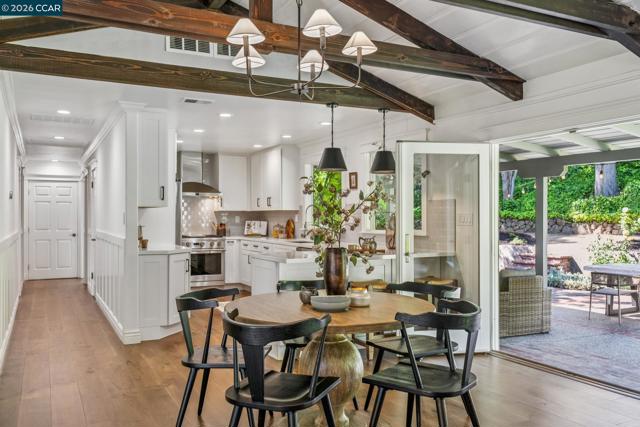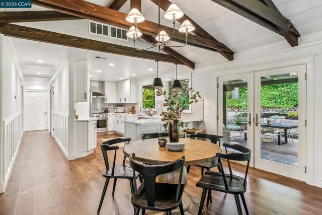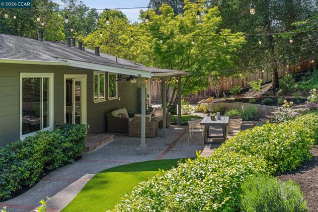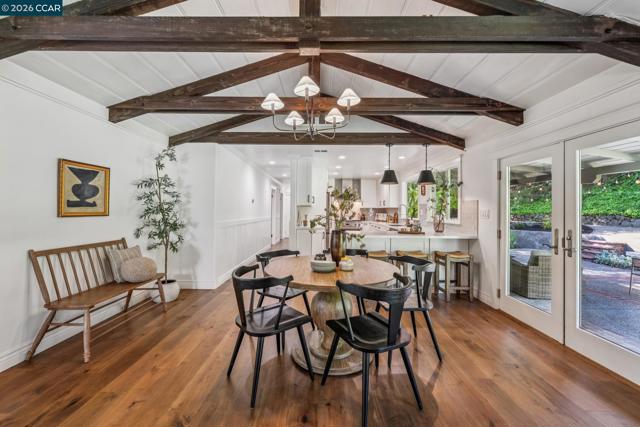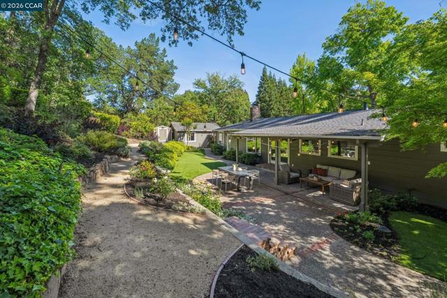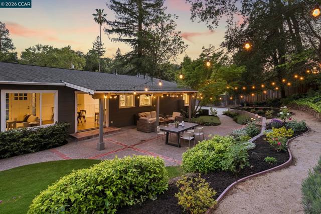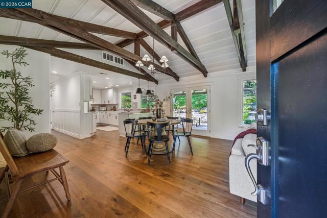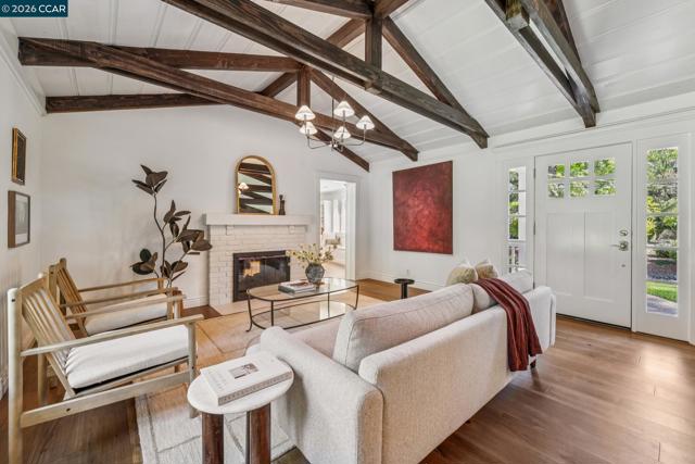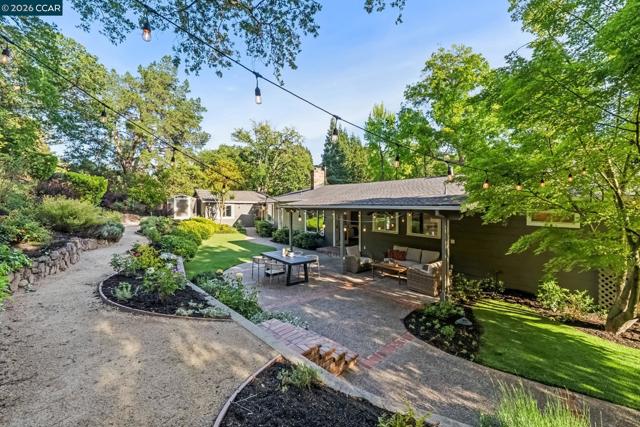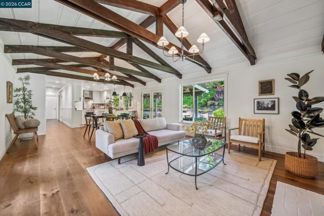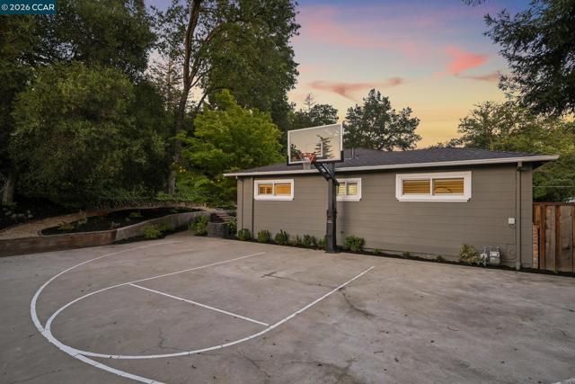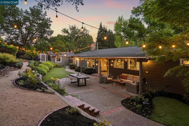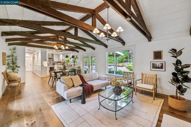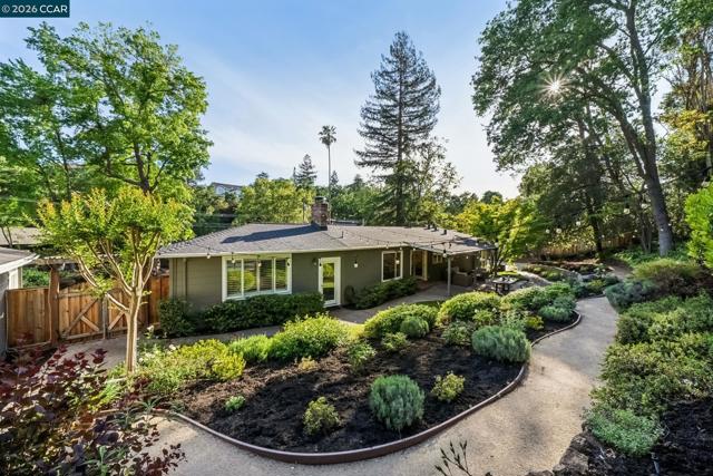 An Enchanting Escape. Set within the coveted Walnut Knolls neighborhood and nestled among a canopy of mature trees, this updated single-story home on nearly half an acre, blends thoughtful renovations with warmth, character, and understated elegance. Offering 3 bedrooms and 3 bathrooms, the home features vaulted ceilings with exposed beams, hardwood floors, a new roof, designer lighting, and curated finishes throughout. The layout includes a spacious family room and two ensuite bedrooms, providing both comfort and flexibility. The grounds are equally compelling. Curb appeal is a standout, creating a warm and welcoming first impression. A generous backyard showcases a sport court, expansive space for a future pool or ADU, and an elevated seating area perfectly positioned to capture sunset views through the surrounding trees. With its scale, privacy, and picturesque setting, the property has even hosted multiple intimate weddings—an exceptional testament to its beauty and sense of place. Located just moments from the elementary school and near the optional Walnut Knolls Association, the home offers both convenience and a strong sense of community. Optional membership includes a pool, playground, and a year-round calendar of neighborhood events. Minutes from parks, top-rated schools, BART, and downtown Walnut Creek, with a shortcut bridge just down the street offering easy, direct access to downtown.
