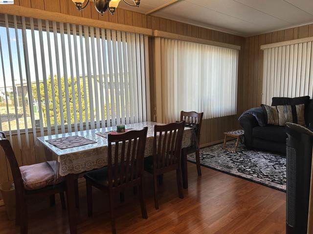 Great opportunity!! Clean, Cozy and ready for your ideas and upgrades! 2 bed/2 bath mobile home in the Eden Gardens Estates Mobile Home Park, a Senior Community. It's L-shaped living and dining rooms open to the galley kitchen. Dining room has a built in china hutch. Kitchen has a gas cooktop and the Refrigerator stays. Interior laundry with Washer & Dryer. 2 Storage Sheds, covered parking for 2 cars and plenty of space for that back yard dream garden :) Easy access to the Interstate 880, San Mateo Bridge, and various shops. One buyer must be 55 years or older, all others, no. younger than 18. Space rent is $880.00 per month Fireplaces: NO