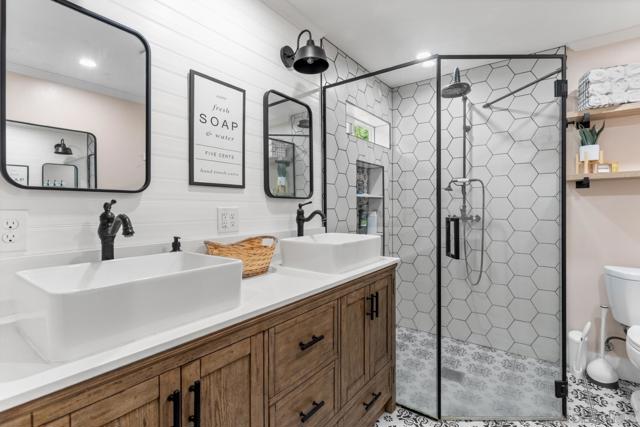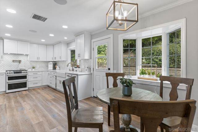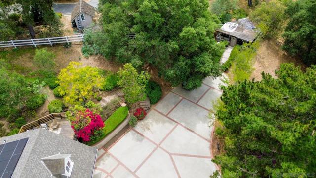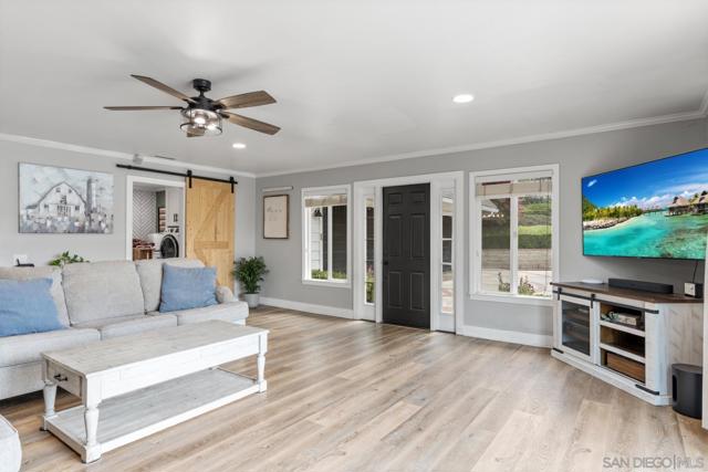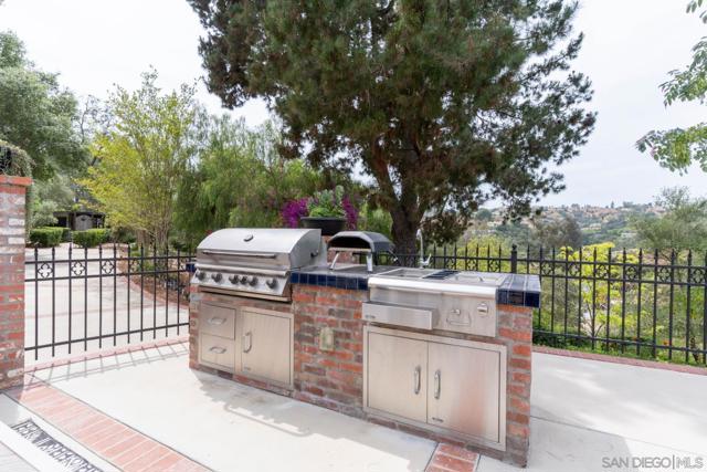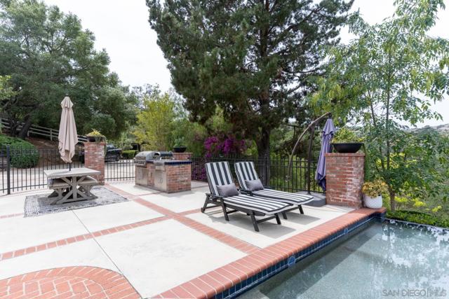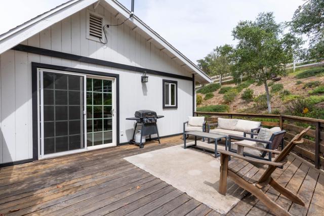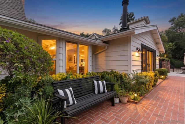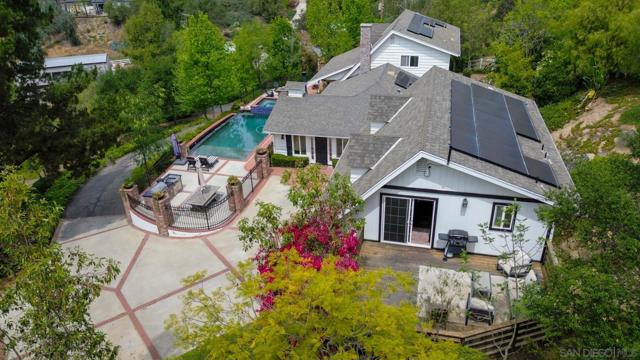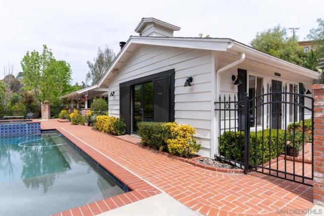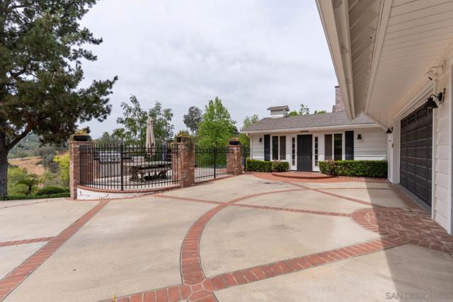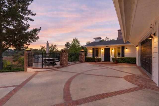 Tucked behind a gated entry, this storybook Fallbrook property unfolds across 1.62 acres, offering 5 bedrooms, 4.5 bathrooms, and 3,270 square feet of thoughtfully updated living space. Blending charm, character, and functionality, the home is designed for both everyday comfort and effortless entertaining. A long private drive sets a peaceful tone on arrival, while the fully fenced grounds provide space for animals, gardening, or simply enjoying the open setting. The main residence features an updated kitchen with white Café appliances, a walk-in pantry, and seamless flow into the living and dining areas. Warm wood flooring, a wood-burning stove, and expansive windows create a welcoming atmosphere throughout. The primary suite is conveniently located on the main level, with additional bedrooms upstairs offering flexibility for a variety of living needs. A detached guest house with its own kitchen provides a private retreat ideal for extended family, guests, or multi-generational living. The outdoor spaces are where this property truly shines. A charming covered porch, mature landscaping, and winding garden pathways create a storybook setting, while the property is designed for entertaining with an infinity edge pool, spa, outdoor kitchen, and multiple seating areas. Decks, patios, and garden spaces offer peaceful places to relax and take in the surroundings. Mountain views, RV parking, and versatile outdoor space complete this unique offering, combining charm, privacy, and lifestyle in a highly desirable Fallbrook location.