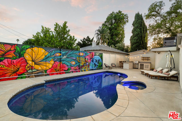 Set on a generous corner lot, this beautifully reimagined residence offers the perfect blend of style, comfort, and resort-inspired living. A charming front yard welcomes you home, setting the tone for what lies beyond an inviting sanctuary thoughtfully remodeled in 2022 with a newer roof and timeless upgrades throughout. Inside, a chef's kitchen anchors the home, seamlessly connecting to an open floor plan designed for effortless entertaining and everyday living. Light-filled spaces flow naturally from room to room, creating an atmosphere that feels both refined and relaxed. Step outside to a private backyard retreat where indoor-outdoor living truly shines. Enjoy a built-in BBQ and eat-in island, ideal for hosting gatherings, alongside an in-ground pool and spa that evoke a vacation-at-home experience. Evenings are elevated by a cozy fire pit and an inviting al fresco dining area, perfect for memorable moments under the stars. This is more than a home, it's a rare opportunity to own a turnkey property that celebrates space, style, and exceptional outdoor living.