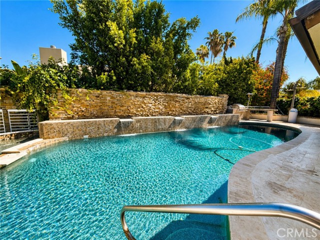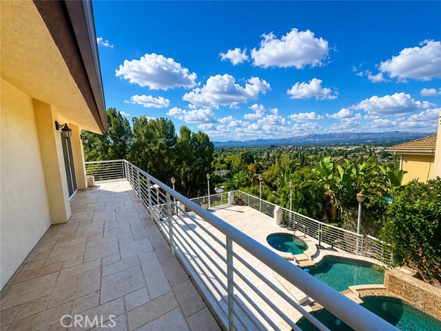Situated south of the Boulevard in the heart of Encino, on the highly sought-after White Oak Place, this immaculate gated estate offers a refined blend of luxury, comfort, and timeless design. Step through the front doors into a grand foyer where soaring vaulted ceilings, a custom staircase, and an open-concept layout immediately set the tone for the home’s sophisticated yet inviting atmosphere. Natural light pours into the formal living spaces, highlighting elegant finishes and seamless transitions between rooms. The gourmet kitchen is thoughtfully designed with granite countertops, custom cabinetry, Viking appliances, and a Sub-Zero refrigerator—perfectly positioned adjacent to the formal dining room and expansive living area, creating an ideal setting for both everyday living and entertaining. Walls of glass frame breathtaking valley views and lead effortlessly to the outdoor spaces. The main level features three generously sized bedrooms, each offering flexibility for guest accommodations or private home offices. Just beyond, a stunning lanai opens to a true backyard retreat—complete with a resort-style pool, outdoor kitchen, and multiple terraced levels designed for elevated indoor-outdoor living and entertaining. Upstairs, the primary suite is a true architectural showpiece. This serene retreat features an open-concept design with a spa-inspired bathroom, complete with a waterfall shower, custom soaking tub, private sauna, and a bespoke fireplace—creating a tranquil sanctuary within the home. An in-home elevator provides effortless access to the second level, where three additional spacious bedrooms—including the primary suite—offer comfort and privacy for family and guests alike. With its exceptional design, luxurious amenities, and sweeping views, this Encino estate embodies elevated California living at its finest.