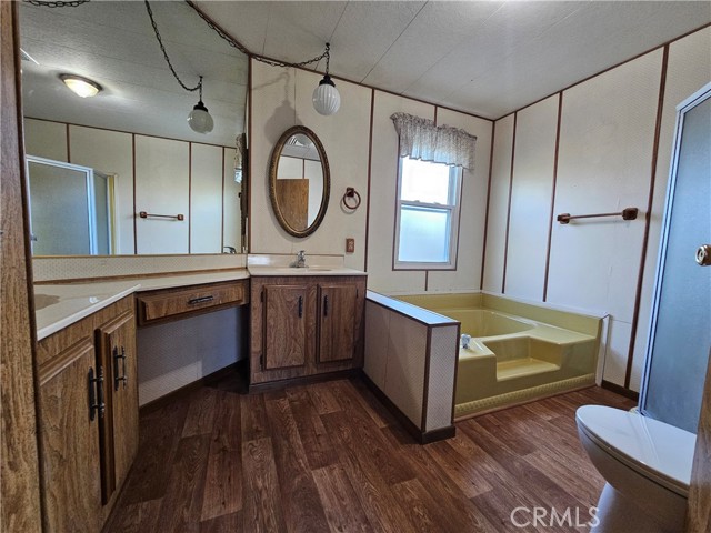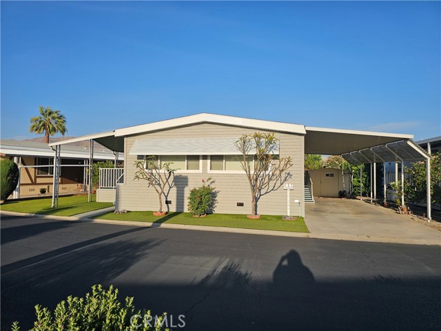 Welcome to 23820 Ironwood Ave #222, located in Moreno Valley’s desirable 55+ community. This beautifully maintained 2-bedroom, 2-bath home offers approximately 1,536 sq ft of bright, open living space with high ceilings, a skylight, and beautiful wood flooring throughout. The home also features dual-pane windows, custom blinds and drapes, and an indoor laundry area for added convenience. Step outside to a welcoming front porch, perfect for relaxing, along with an outdoor shed for additional storage. The covered carport accommodates up to 2 standard-size vehicles. The community offers resort-style amenities including a pool, spa, clubhouse, gym, card room, and pool hall. Conveniently located within walking distance to nearby shopping and dining. This move-in-ready home offers comfort, convenience, and a relaxed lifestyle. Schedule your private showing today. The property is on leased land with a monthly space rent of $850.