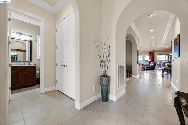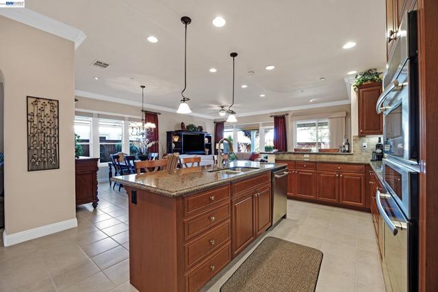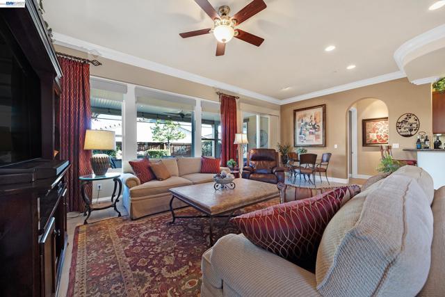 Highly upgraded Costa Dorada model located in the sought-after 55+ community of Trilogy at The Vineyards. This beautifully enhanced home stands out from the moment you arrive, featuring an elegant etched glass front door, extensive crown molding, upgraded lighting, and professionally designed front and back landscaping that creates both curb appeal and a warm, inviting atmosphere. The kitchen blends style and function with JennAir stainless steel appliances—perfect for everyday living and effortless entertaining. Step outside to your own private, resort-style backyard. Designed for both relaxation and hosting, it features two custom water fountains with lighting, travertine hardscape, and an extended covered patio with a ceiling fan—creating a peaceful, upscale outdoor retreat. Energy efficiency is already in place with owned solar (24 panels), helping keep utility costs low. (See Disclosure link for full list of upgrades) Located in Trilogy at The Vineyards, residents enjoy access to Club Los Meganos, offering indoor and outdoor pools, a state-of-the-art fitness center, pickleball and tennis courts, on-site dining, and a full calendar of social activities. This is more than a home—it’s a lifestyle upgrade in one of Brentwood’s most desirable 55+ communities. See Disclosure link for full list of upgrades