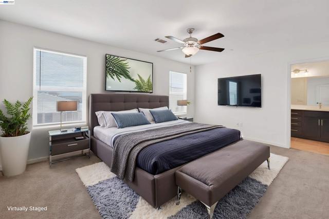 Beautifully maintained 2022-built Next Gen home tucked away on a quiet cul-de-sac in the desirable Pacheco Pointe area. Offering 5 bedrooms, 3.5 bathrooms, and 2,554 sq ft of living space on a 6,000 sq ft lot with FULLY PAID solar. This home features a highly desirable attached IN-LAW SUITE with private entry, kitchenette, and full bath, ideal for multi-gen living or rental potential. The first floor has been freshly painted. Upstairs offers 4 well-sized bedrooms, 2 bathrooms, and a spacious loft perfect for a second living area or office. The main suite features a walk-in closet, dual vanities, and a walk-in shower. The open-concept kitchen includes quartz countertops, a large island, walk-in pantry, and stainless-steel appliances, flowing into the living area. Tile and carpet flooring throughout. Enjoy a spacious, low-maintenance backyard with extended concrete, perfect for outdoor entertaining or future customization such as a pool, ADU, or RV parking. Buyer to verify. Conveniently located near shopping, dining, and everyday amenities, this home combines flexibility, energy efficiency, and inviting curb appeal.