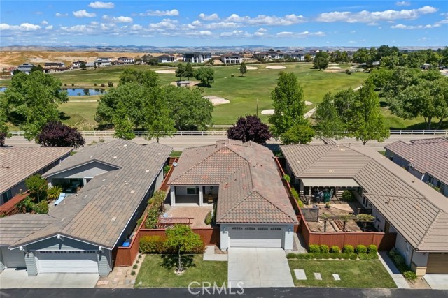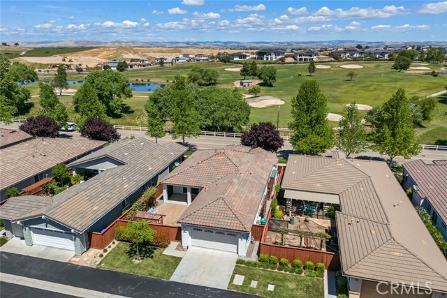 Welcome to refined Central Coast living in the highly sought-after Traditions at River Oaks 55+ community. Set in a premier and highly desirable location across from the River Oaks Golf Course, this beautifully renovated Mediterranean-style residence enjoys serene views of the fairway and tranquil water feature. The property has been extensively updated with interior and exterior paint plus additional improvements throughout, creating a true move-in-ready home. Step inside to discover a light-filled, open-concept living space designed for both comfort and style. The inviting living room features a cozy gas fireplace and elegant plantation shutters, creating a warm yet sophisticated ambiance. The thoughtfully updated kitchen is a true highlight, showcasing upgraded quartz countertops, stainless steel appliances, a stunning designer backsplash, a cozy breakfast nook, and a convenient built-in desk area. A sliding glass door seamlessly connects the kitchen to the private backyard patio—ideal for indoor-outdoor living. The spacious primary suite serves as a peaceful retreat, featuring a private sliding glass door that opens to a charming, low-maintenance backyard and screened porch. The porch is equipped with motorized track-guided shades and new outdoor ceiling fans, creating a comfortable space to enjoy the surroundings year-round. A well-appointed guest bedroom and a versatile third room provide flexibility for an office or additional guest accommodations. Additional features include an attached garage outfitted with built-in cabinetry, a dedicated workspace, epoxy flooring, a mini-split heating/air conditioning system, and a Tesla charger. The indoor laundry room adds convenience with cabinets offering plenty of storage space and includes a barely used washer and dryer set. This move-in ready home combines thoughtful upgrades, prime location, and effortless living—an exceptional opportunity to enjoy the best of the Traditions lifestyle.