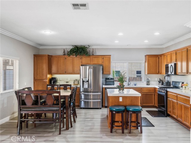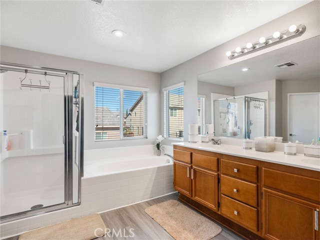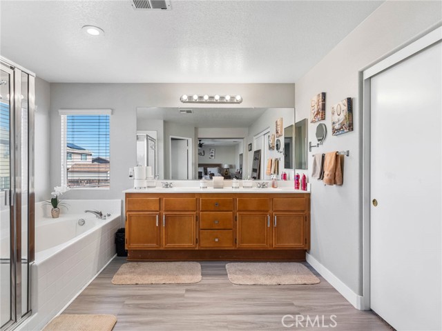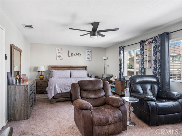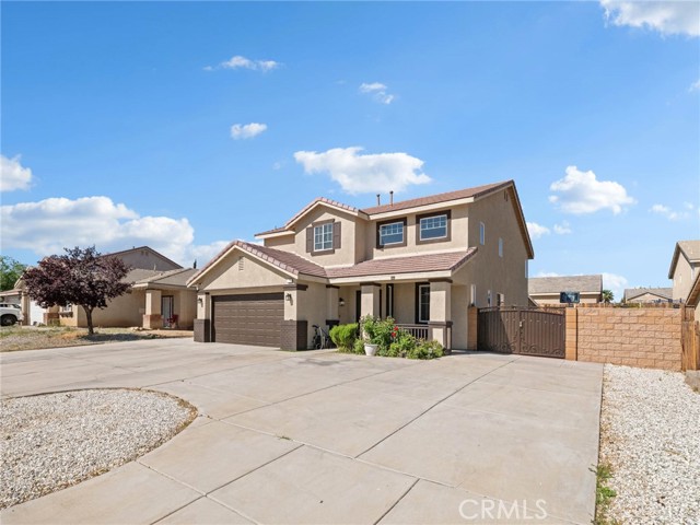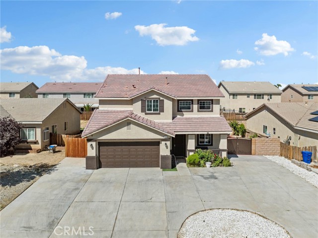 Welcome to this beautifully maintained 4-bedroom, 3-bathroom home offering over 2,500 square feet of thoughtfully designed living space. From the moment you step inside, you’re greeted by soaring ceilings and an abundance of natural light, creating a bright and inviting atmosphere. Perfect for both everyday living and entertaining, the home features a spacious family room with a cozy fireplace, an open dining area, and a stylish kitchen complete with a center island that seamlessly connects to the main living spaces. Upstairs, the oversized primary suite serves as a private retreat, featuring a large walk-in closet and a well-appointed ensuite bath with dual vanities, a separate shower, soaking tub, and private water closet. Two additional bedrooms share a convenient Jack & Jill bathroom, offering flexibility for guests, family, or a home office setup. Step outside to enjoy a private backyard with an extended covered patio—ideal for entertaining or relaxing under the High Desert sky. Low maintenence yard makes it easy to maintain. Conveniently located near shopping, dining, schools, and major commuter routes, this home offers the perfect balance of space and comfort