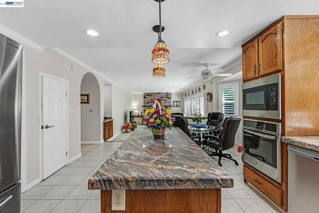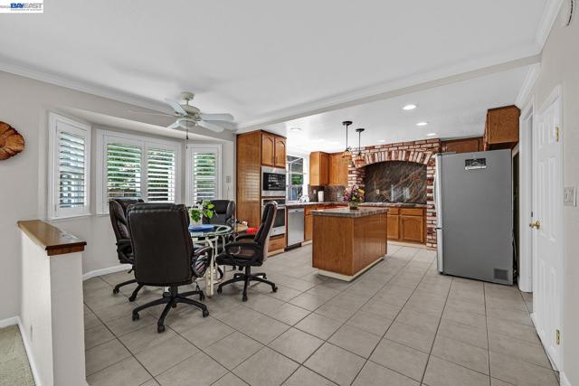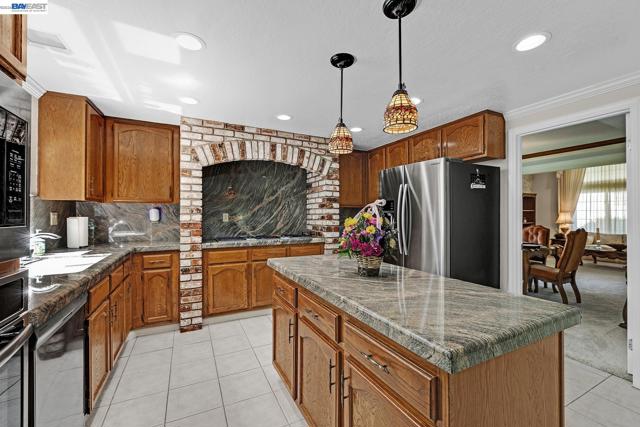 Beautiful Quail Run Home! 4 bedrooms, 3 baths, appx. 3,300 square feet, attached 3 car garage with a huge bonus room upstairs with fireplace, wet bar with oak top and cabinets & vaulted ceilings. This home features: 1 bedroom, 1 bathroom downstairs, large living room with vaulted ceiling, elegant formal dining room with coffered ceiling, large family room with brick fireplace & raised hearth & wet bar with granite top. Gourmet kitchen with granite counters & full granite backsplash, center island ,pantry, tile flooring, recessed & pendent lighting, garden window jennaire cooktop, stainless steel appliances include microwave, oven, dishwasher, & refrigerator and breakfast nook with ceiling fan. Primary bedroom & bathroom have two walk in closets, dual sink vanity with granite counters, separate tub & shower, tile flooring & recessed lighting. Dual zone heat & air conditioning. Inside laundry: washer/dryer included. Beautifully landscaped backyard with raised wood decking and auto irrigation. Other amenities include: Plantation shutters, raised panel doors, dual pane windows, & mirrored closet doors. This is a must see. O/H Sat/Sun 1:30-4pm