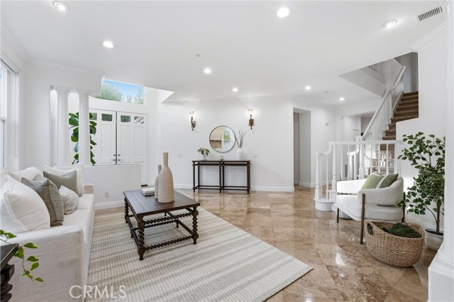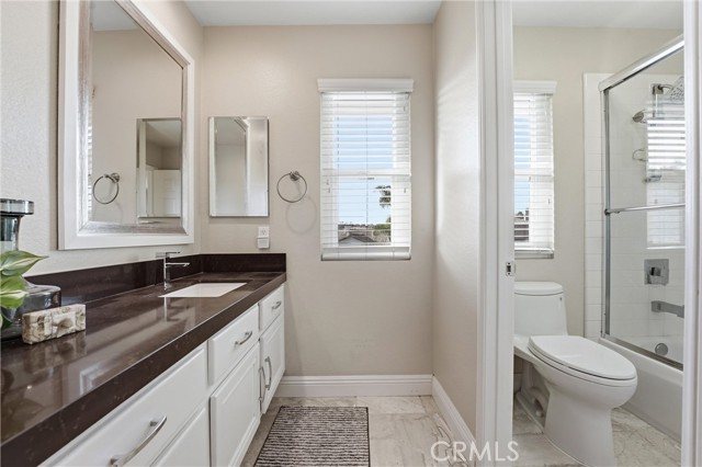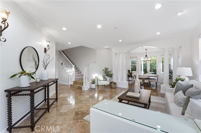 Welcome to this exquisite coastal residence tucked behind the gates of Marblehead. This beautifully appointed home is perfectly positioned on a quiet cul-de-sac with striking curb appeal. From the moment you arrive, this stunning home makes a lasting impression. Thoughtfully designed for both comfort and luxury, the interior showcases a light-filled living room and an elegant formal dining area. The updated chef’s kitchen is beautifully appointed with newer quartz countertops, stainless steel appliances, a wine refrigerator, and a spacious walk-in pantry. It opens seamlessly to a casual dining area and an inviting family room, complete with a cozy fireplace—ideal for everyday living and entertaining. The main level features a convenient bedroom and full bath with updated vanity and fixtures, and a very ample walk-in closet, making this space ideal for multigenerational living or guests. Upstairs, the reimagined primary suite offers a true retreat, highlighted by a custom walk-in closet with motion lighting and a spa-inspired bathroom featuring a stunning walk-in shower and separate soaking tub. The second floor is completed by four ample-sized additional bedrooms, a spacious loft currently acting as a second family room, and a full bathroom, offering flexibility for family, guests, or a home office. Step outside to a serene, private park-like backyard with beautifully designed hardscape and landscape, creating the perfect setting for relaxation or entertaining. Enjoy evenings grilling at the built-in BBQ, or gathering around the inviting fire pit on the patio, highlighted by the Alumawood patio cover and bistro lights for the perfect ambiance. Additional highlights include designer paint, newly installed carpet upstairs, and numerous upgrades throughout. Ideally located within walking distance to schools and just minutes from shopping, a neighborhood community park, sports parks, world-class surfing, and beaches, this home perfectly blends luxury, comfort, and convenience. This is San Clemente, the Spanish Village By the Sea. Welcome to 2421 Via Mero—where your dream home awaits.