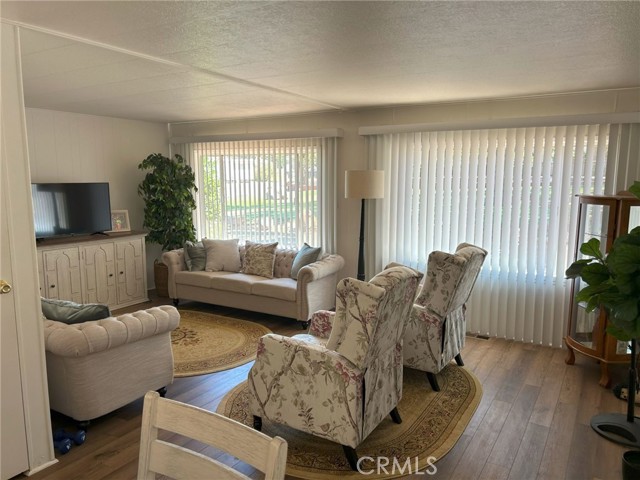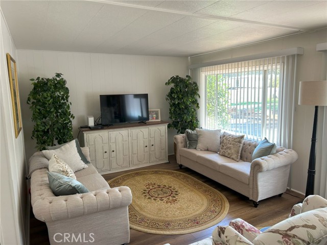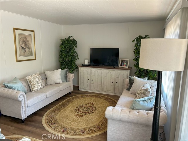 Welcome to your peaceful retreat in a well maintained all-ages park featuring a community pool, recreation hall, and grassy common space dotted with mature trees—perfect for relaxing under the shade. This spacious and bright 2-bedroom, 2-bathroom home offers an inviting living area with laminate flooring throughout, some fresh paint and new blinds, and large windows that frame views of trees and green lawn. The charming built-in hutch in the dining room adds character and functionality, ideal for displaying dishes or storing your favorites. The kitchen is well-appointed with solid surface countertops, a gas range, garbage disposal, and a water filtration system at the sink. Refrigerator, range, washer, and dryer are all included for your convenience. Enjoy year-round comfort with a newer HVAC system (2022) and a new roof installed within the last few years. Modern light fixtures enhance the space, while the oversized new shed and generous storage throughout provide space for all your belongings. The large primary suite offers a peaceful retreat, and the private driveway allows for off-street parking. Low monthly space rent includes water, garbage, and septic—an excellent value for the amenities and lifestyle offered here. Don't miss your chance to own this lovingly updated home in a quiet and welcoming community.