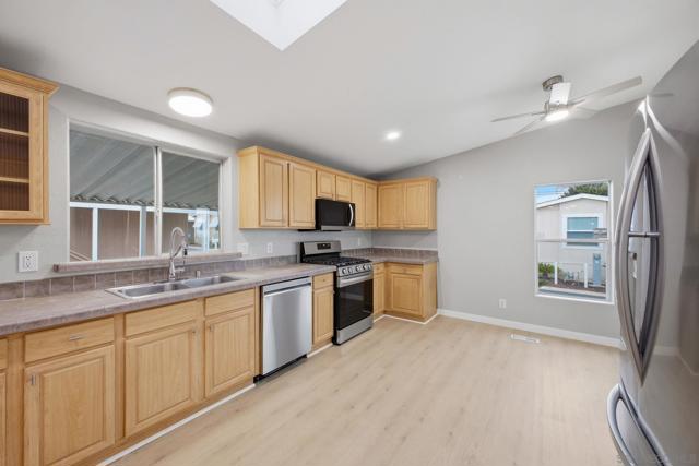 Welcome to this remodeled home located within the gated Rancho Mesa 55+ community. The front porch offers a comfortable outdoor space suitable for morning coffee, reading, or relaxing throughout the day. Inside, the home features updated flooring, newer appliances, and refreshed interior finishes. The layout offers an open-concept living and dining area with natural light throughout, creating a bright and functional living space. The kitchen is positioned adjacent to the main living area and includes ample cabinet storage and included appliances, providing convenience for everyday use and entertaining. This home offers three bedrooms and two full bathrooms, allowing flexibility for guests, a home office, or additional living space. The primary bedroom includes an en-suite bathroom. The exterior includes landscaped areas and a private outdoor setting. The Rancho Mesa community features gated access and maintained common areas, with proximity to shopping, dining, and other everyday amenities.