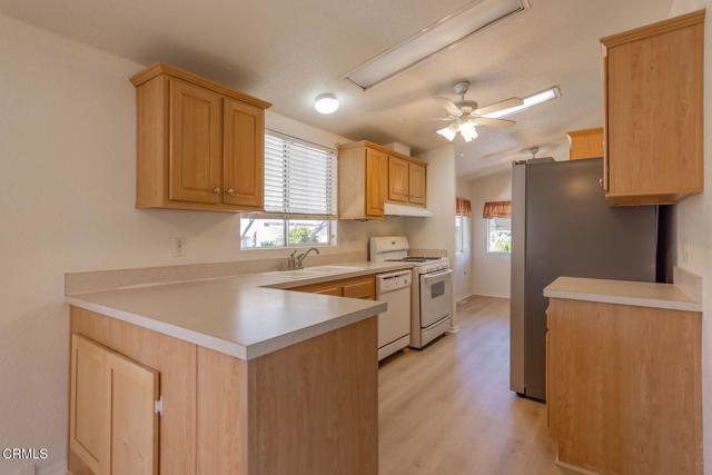 Welcome to easy, comfortable living in the desirable Ojai Villas Mobile Estates, a gated 55+ community in the heart of Ojai. This well-maintained 2004 home offers a spacious and functional layout with multiple bedrooms, generous living areas, and thoughtful accessibility features throughout.Step inside to a bright and open living room that flows seamlessly into the dining area and kitchen, creating an ideal space for both everyday living and entertaining. The kitchen features ample cabinetry, natural light, and a cozy breakfast nook perfect for morning coffee with peekaboo mountain views from the living room.The primary suite offers a comfortable retreat with an en-suite bath and walk-in closet, while additional bedrooms provide flexibility for guests, a home office, or hobbies. Wide hallway and extra-wide doorways enhance accessibility, and the home includes a ramp for easy front door entry, making it well-suited for a variety of needs.Enjoy indoor-outdoor living with a covered patio and private outdoor spaces ideal for relaxing, gardening, or entertaining. Covered parking and additional storage add convenience.Residents of Ojai Villas Mobile Estates enjoy access to a community pool, gym, and clubhouse with regular social activities, fostering a vibrant and welcoming lifestyle. Ideally located near the Ojai Bike Trail, and an Ojai Trolley stop, this home offers both tranquility and accessibility to local amenities.The home has been freshly painted inside and new flooring installed throughout.