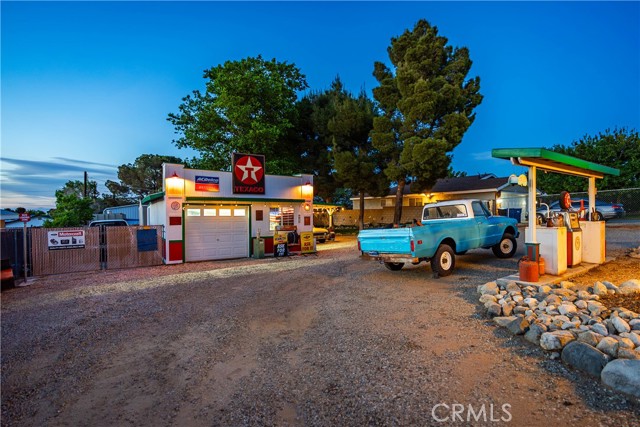 Now is the chance to live in one of the most unique homes, known as the ''Gas Station House'' in the heart of Quartz Hill! This awesome, updated 1-bedroom, 1-bathroom home is situated on .24 acres and within walking distance of the quaint town of Quartz Hill. As you approach the home, the intriguing vision of an early-1900s-era gas station stands out, with vintage yard art, signs, and a gas pump. The custom-built A-frame-style home greets you with a walkway and front porch. Step inside to appreciate some of the upgraded features, including LVP flooring, recessed lighting, updated plumbing, 2 split-units for efficient heating and cooling, and ceiling fans throughout. The kitchen offers granite countertops, multiple cabinets, and stainless steel appliances, including a refrigerator, and is adjacent to the dining room. The living room feels cozy yet has a vaulted ceiling offering plenty of natural lighting and a ceiling fan. The bathroom is updated with modern features of a custom tile shower/tub enclosure and a pedestal sink. The bedroom includes neutral-colored carpet and a ceiling fan. The property offers RV access, a Connex unit, gated animal quarters featuring two pens, one of which is insulated and has two windows, a shed that has been remodeled, and a detached garage and bar area. Conveniently located near schools, a park, restaurants, shopping, and amenities. Schedule an appointment to view this home today!