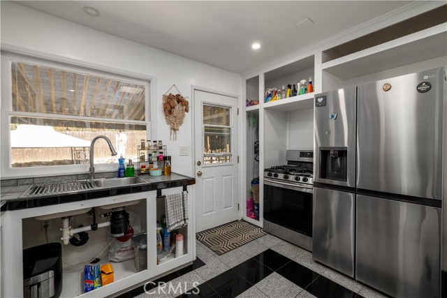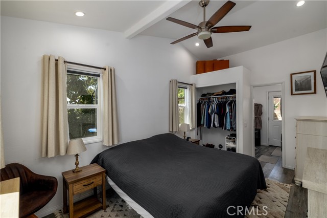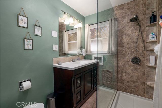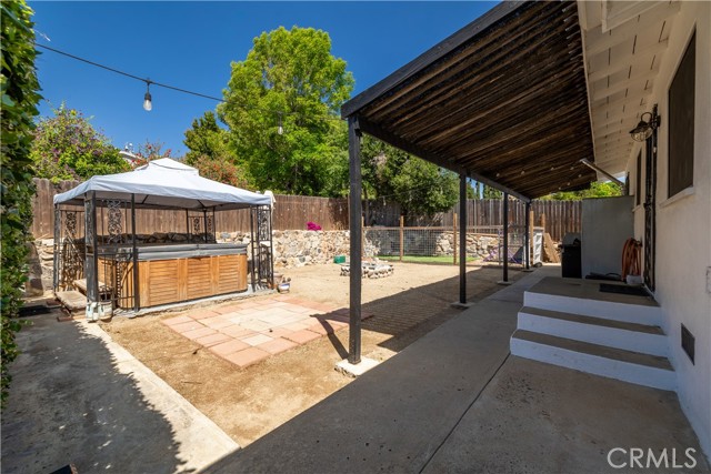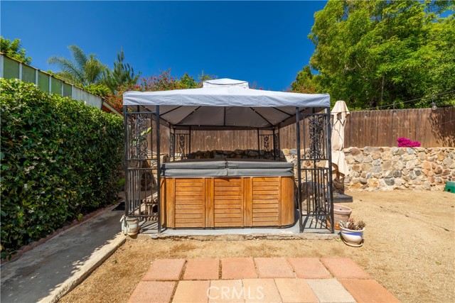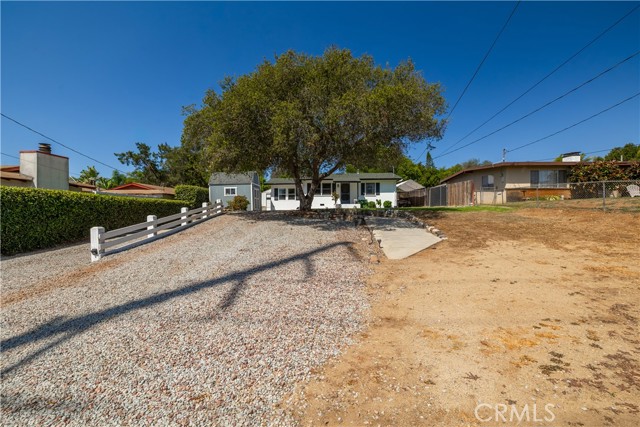 Welcome to 155 Barhaven Lane, centrally located in Fallbrook! As you enter from the cul-de-sac, you will pass through a gate to see the well landscaped yard and recently repainted exterior. The home is 1,200 sqft and features 3 bedrooms and 2 bathrooms. You enter the home in the living room with hardwood floors and ceiling fan. The kitchen has granite tile counters, open cabinets, stainless steel appliances, and access to the back patio. The primary bedroom is sunken, with LVP flooring, ceiling fan, and open closet. The attached primary bathroom has walk-in shower with rainfall showerhead, upgraded vanity with dual faucets, stackable washer and dryer, and access to the back yard. The two guest bedrooms are located on the opposite end of the home and one of the bedrooms has access to the back patio as well. The guest bathroom has a walk-in shower. In the back yard there is a patio cover, firepit, and above ground spa. Also on the property are a detached garage/workshop, storage shed, RV parking with hookups, and plenty of space!