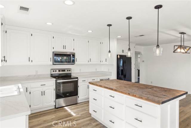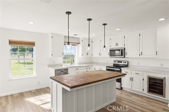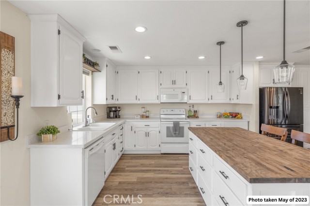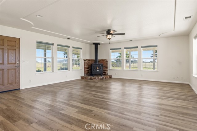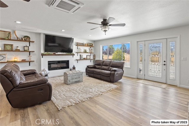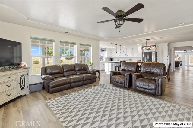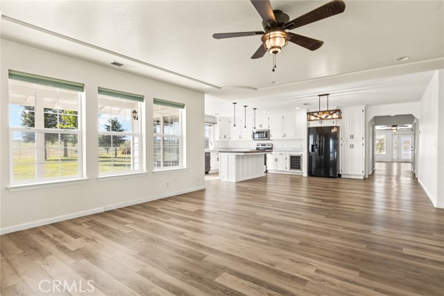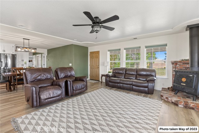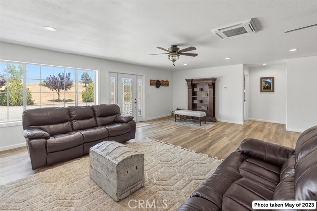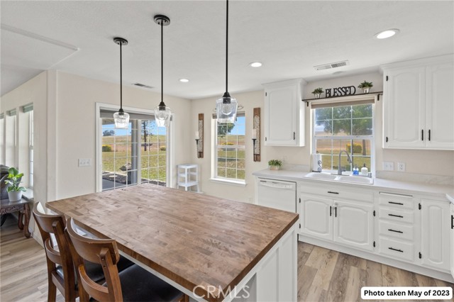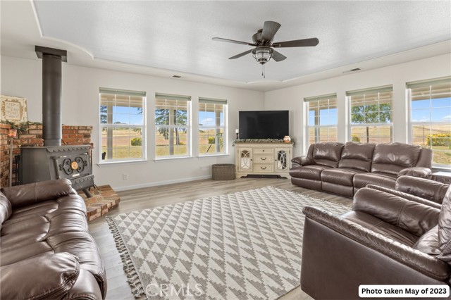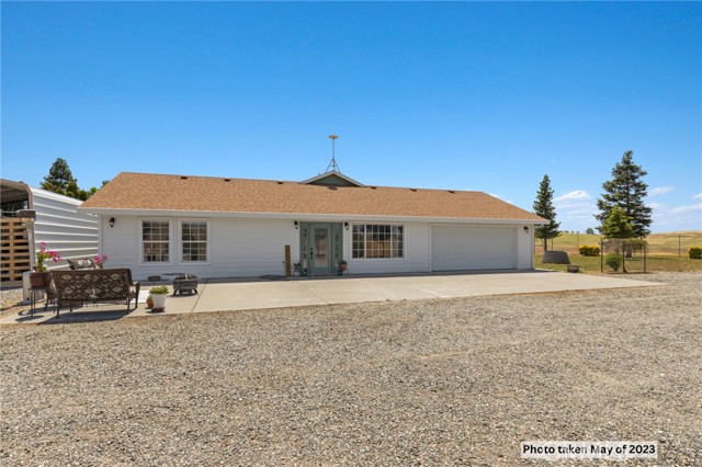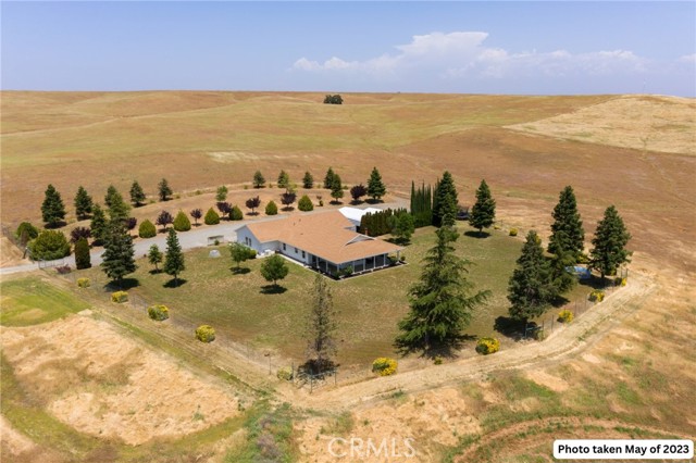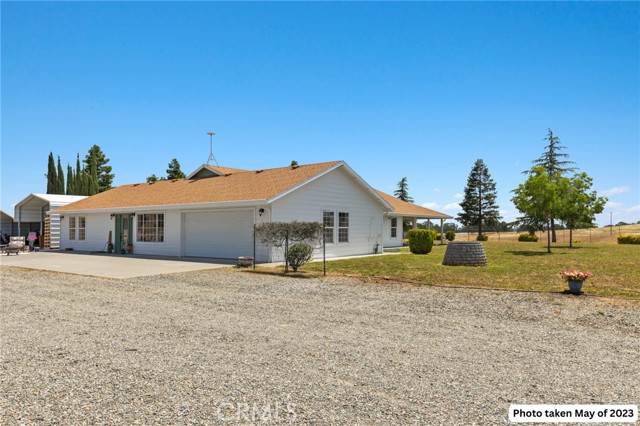 Experience the best of country living on this exceptional gated estate set on over 30 acres in the scenic countryside of Corning, located in the desirable Thomas Creek Estates. Backing to a sprawling 2,220-acre cattle ranch, this property offers a rare combination of privacy, space, and neighborhood connection, with 360° views and sunsets that feel almost unreal. This light, bright, and airy 4-bedroom home showcases modern farmhouse vibes with thoughtful upgrades throughout. Inside, you’ll find fresh interior paint, LVP flooring throughout, and abundant windows that flood the home with natural light while framing the surrounding rolling hills. The beautifully updated kitchen is designed to impress, featuring quartz countertops, crisp white cabinetry, an electric range, a beverage/wine cooler, and a generous center island with butcher block surfaces and breakfast bar seating—perfect for casual dining and entertaining. The spacious family room offers a cozy setting for relaxing evenings, while a separate living area provides additional space for hosting, gatherings, or game nights. The updated primary bathroom adds a touch of modern comfort with dual sinks, stylish finishes, and a beautifully designed walk-in shower. Additional bedrooms offer flexibility for guests, office space, or hobbies. Step outside to take in the full experience—an expansive wraparound covered porch perfectly positioned to capture panoramic views and breathtaking sunsets from every angle. The acreage offers rolling, usable land ideal for animals, gardening, recreation, or creating your own private retreat. This property is packed with features, including owned 14.3 kW solar, recessed lighting, ceiling fans throughout, updated fixtures, an attached two-car garage, two large carports, and a seasonal pond that enhances the natural beauty of the setting. A rare opportunity to own a property that blends modern comfort, wide-open space, and unforgettable views—this one truly delivers the lifestyle you’ve been searching for.