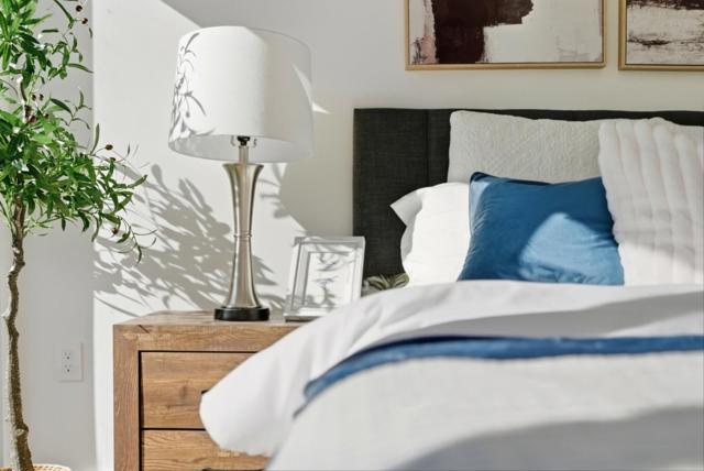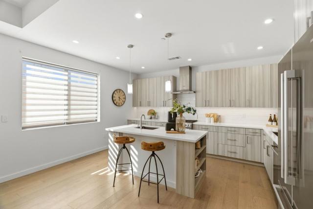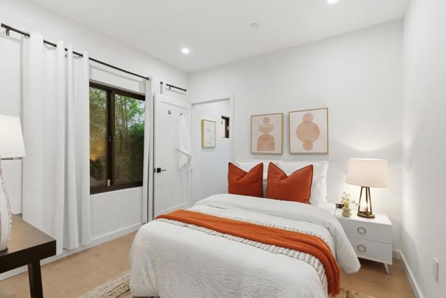 Thoughtfully designed for modern comfort and flexibility, 914 Woodside Rd is a striking 2-bedroom, 3-bath residence offering 1,433 sq. ft. of refined living space. The unique layout features two primary suitesone conveniently located on the ground floor and a second private retreat on the top levelideal for guests, multi-generational living, or work-from-home flexibility. Interior finishes include wide-plank European white oak hardwood floors, smooth Level 5 wall finishes, sleek glass interior railings, and soaring 910 ft ceilings. Oversized high-performance windows fill the home with natural light, while enhanced insulation between walls and floors creates a quiet, comfortable environment. The designer kitchen features Bosch appliances with gas range, quartz countertops with full-height premium backsplash, custom soft-close cabinetry with dovetail drawers, and under cabinet lighting. Spa-inspired bathrooms offer frameless glass showers, Hansgrohe fixtures, and quartz surfaces. Enjoy seamless indooroutdoor living with a 119 sq. ft. balcony off the main living area and an expansive 507 sq. ft. private balcony off the upper-level primary suite. Additional highlights include a 2-car attached garage pre-wired for EV charging, secured entry gate, and fully fenced perimeter.