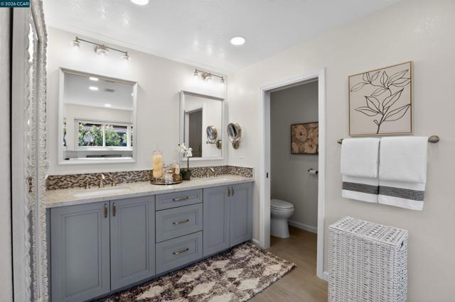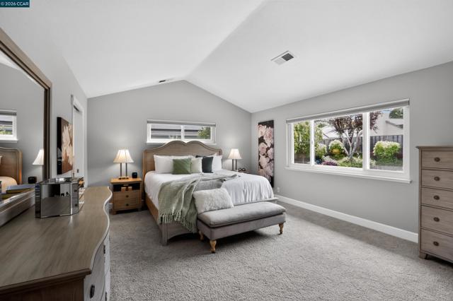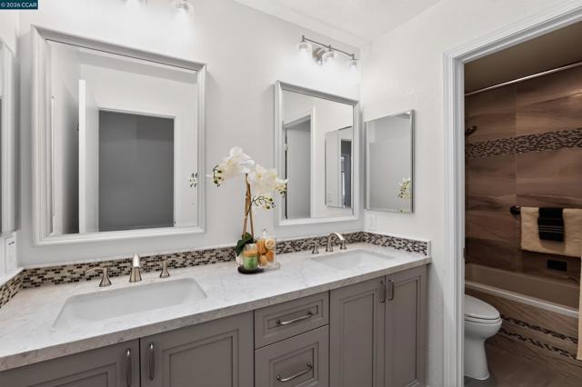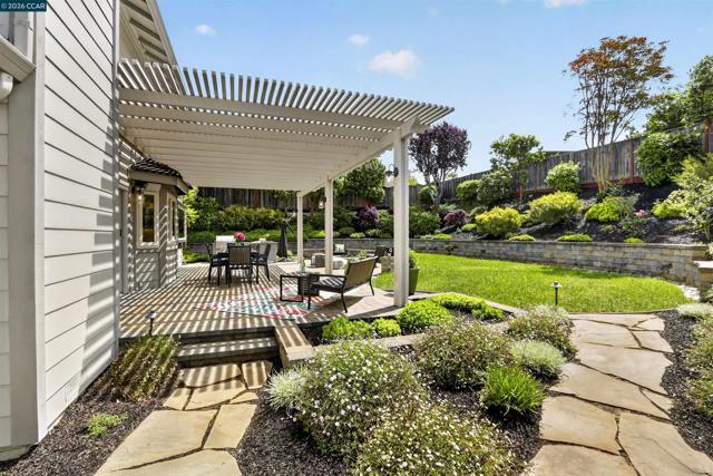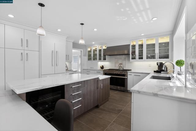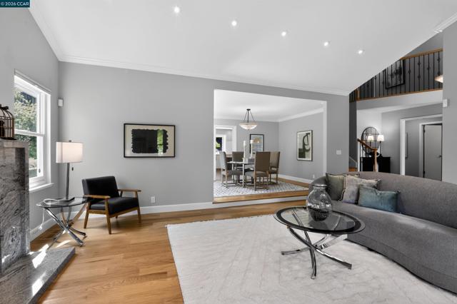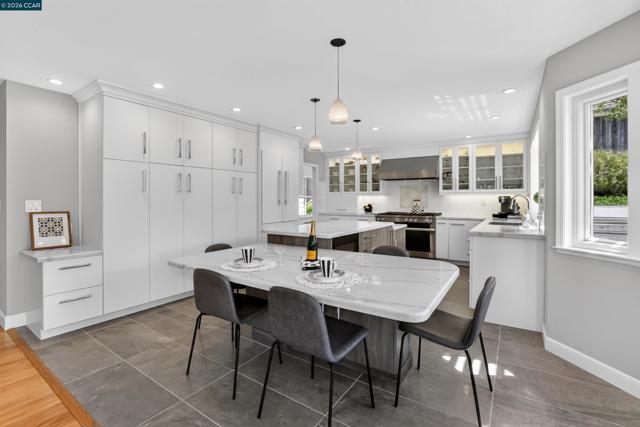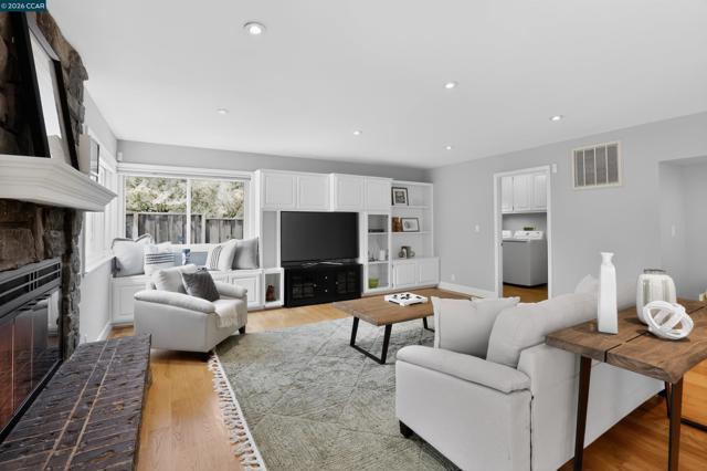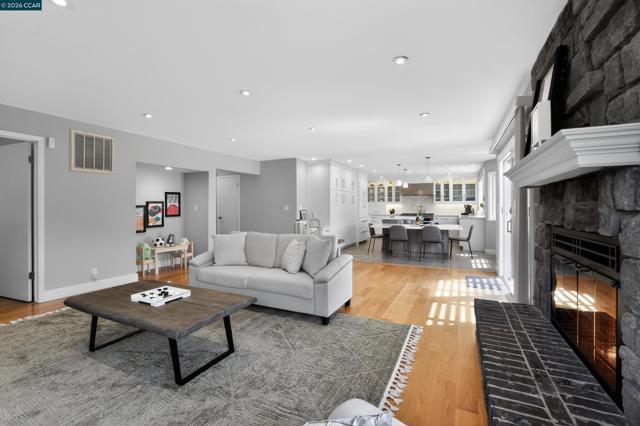 Beautifully updated home centrally located in the popular Moraga Place neighborhood on a quiet street. Dream kitchen with stainless steel Miele appliances, a 6-burner gas cooktop plus griddle, double oven with dedicated microwave, plate warmer, and stainless-steel hood. Spacious island with seating area, custom cabinetry with soft-close doors and drawers, tile backsplash, and quartzite countertops. The kitchen opens to a generously sized family room with vaulted ceilings, a fireplace, and access to a beautiful outdoor living space featuring an outdoor kitchen, firepit, and lawn play area. Perfect for entertaining. Inside laundry room. Recessed lighting throughout and hardwood floors. Expanded primary bedroom with vaulted ceilings. Luxurious primary bathroom with tasteful use of tile and color, separate shower, freestanding tub, and heated floors. Light-filled living room with fireplace and vaulted ceilings, plus a formal dining room. Perfect for entertaining guests. One bedroom and a full bathroom on the first floor. Central air conditioning. Welcome Home!