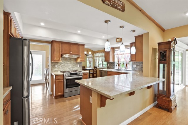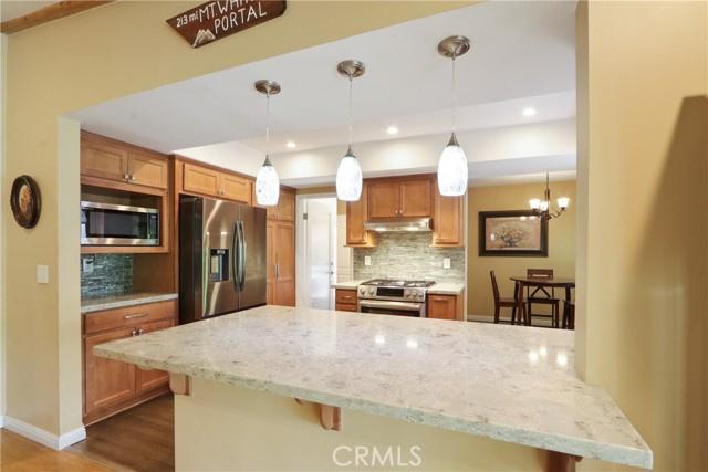 Claremont pride of ownership at its finest. This stunning single-story Claremont home offers 3 bedrooms and 2.5 bathrooms, showcasing quality updates and exceptional care throughout. From the moment you enter, you are welcomed by a spacious entryway and inviting living room highlighted by a beautiful stone fireplace. The heart of the home is the graciously sized family room, featuring a second fireplace, vaulted ceiling, and dining area surrounded by a striking wall of glass windows that fill the space with natural light while overlooking the beautifully landscaped backyard. The kitchen was remodeled in 2019 and features granite countertops, elegant shaker-style cabinetry, recessed lighting, pendant lighting, and a separate breakfast room with a built-in china hutch and lovely backyard views. Adjacent to the kitchen is a large laundry room with sink and convenient half bath. The private primary suite is situated at the rear of the home and offers access to the backyard. The primary bathroom is both stylish and functional, featuring a spacious walk-in shower. Step outside to enjoy the expansive patio, perfect for entertaining, along with an artificial turf lawn for easy maintenance. The backyard also offers multiple built-in exterior storage sheds, providing excellent space for tools, hobbies, and organized storage. Additional improvements include windows replaced in 2014, bedroom windows replaced in 2023, a new roof in 2022, exterior painted with Tex-Cote in 2022, and a replaced heating and cooling system in 2022. A truly special home that reflects pride of ownership inside and out. Solar Panels are leased