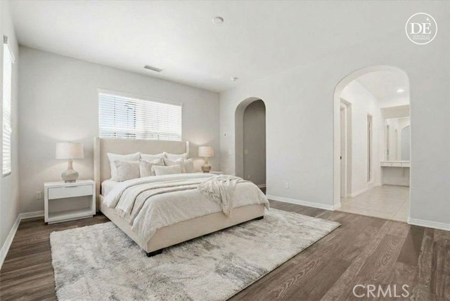 Low Tax, Distinctive & well designed beautiful house at the highly desirable Edenglen community near Ontario Ranch (5 bedrooms & 5.5 baths, 3,348 square feet of living space). This is a corner lot house. Large formal living room. Formal family room & dining room. Gourmet kitchen with an oversized granite island for gathering and entertaining. The Living Room features a beautiful fireplace and is open to the kitchen. The kitchen features granite counter tops, a center island with build-in microwave, stainless steel appliances & a built-in double oven. Home has been wired for entertainment and connectivity. Dual zone air conditioning. The Master Suite has huge walk-in closet, separate shower, soaking oval tub & dual sink vanities. There’s one full bedroom and bathroom down-stair plus an additional half bath for guests. An upstair bonus room. This beautiful home is move-in ready. Custom epoxy garage floor with build-in EV charger in the garage. Residents enjoy resort-style HOA amenities. This planned community offers amenities for recreations & relaxation. Including a beautiful Clubhouse, wraparound porch, beautiful trees and landscaping. Pinheiro Park offers large green lawn serves as amphitheater for summer movies. Swimming pool and children’s wading pool, playgrounds and tot lots, basketball courts, half mile long walking trail, dog park, BBQs for outdoor dining. Convenient to many shopping centers, Costco, 99 Ranch Market, dining and schools. Conveniently located near Victoria Gardens, Ontario Mills, 15 mins drive to Ontario Airport and 10 minutes away from the soon open ONT Field. With easy access to the 60, 15, 10 freeways, This is the perfect blend of modern design, prime location, and community living, a home you won’t want to miss!