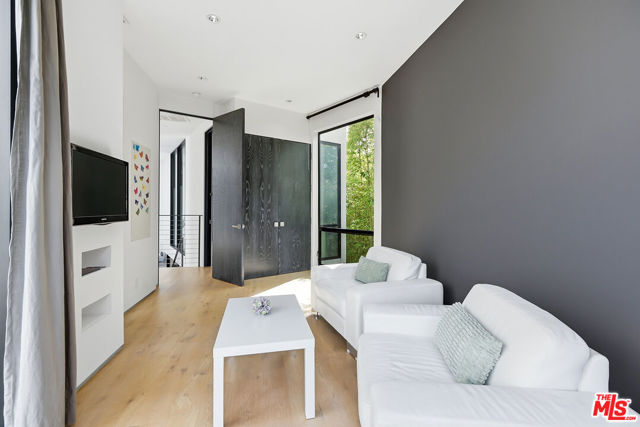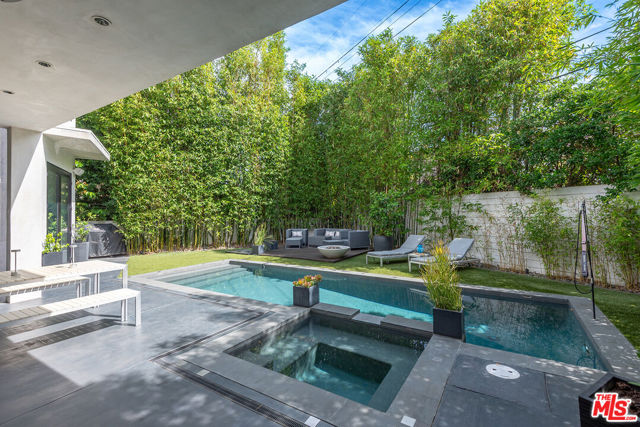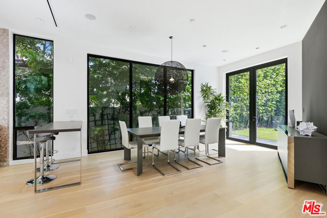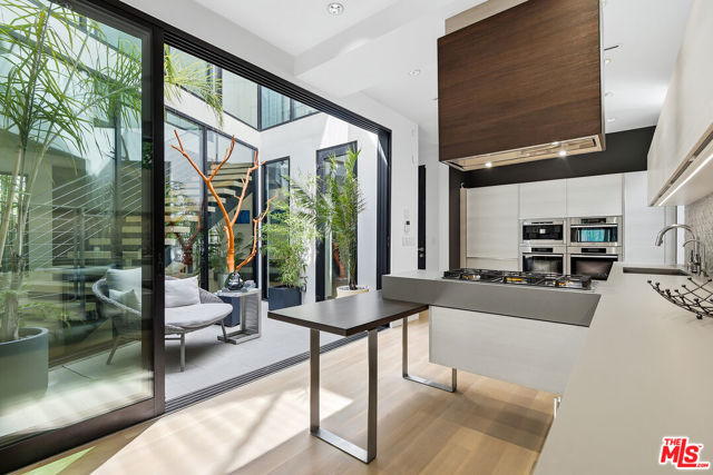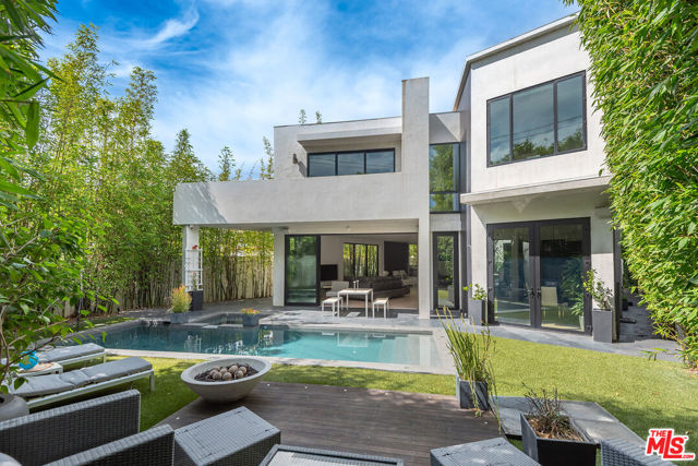 Come experience this impeccably maintained energy-efficient smart home designed for effortless living and elevated entertaining. This beautifully appointed 5BD/5BA modern residence blends clean design with inviting warmth, filled with abundant natural light throughout.The open-concept layout seamlessly connects the living, family, dining, and kitchen areas ideal for both entertaining and everyday living. The chef's kitchen features quartz countertops, premium Miele appliances, Sub-Zero refrigerator, and a breakfast bar, with direct access to a serene atrium for indoor-outdoor enjoyment. A versatile main-level bedroom offers flexibility for guests, office, or creative space. Upstairs, four spacious en-suite bedrooms provide comfort and privacy, along with a convenient laundry area. The primary suite is a true retreat, complete with fireplace, private balcony, and spa-like bath with dual vanities, soaking tub, and rain shower.The backyard is a private resort, featuring a saltwater pool and spa, expansive patio, and low-maintenance turf and privacy provided by mature bamboo trees perfect for relaxing or entertaining. The home features an impressive array of energy-efficient, network/automation and security upgrades. Highlights include an owned solar system, two Tesla Powerwall battery backup systems, and a new all-electric HVAC system with a high-efficiency inverter heat pump. These are just a few of the many thoughtful energy and water-saving improvements that enhance both comfort and sustainability.Thoughtful design, quality finishes, and seamless indoor-outdoor flow create a sophisticated yet comfortable lifestyle. Ideally located moments from The Grove, Beverly Center, Cedars-Sinai and Melrose Place, with close proximity to new metro station, premier dining and shopping.