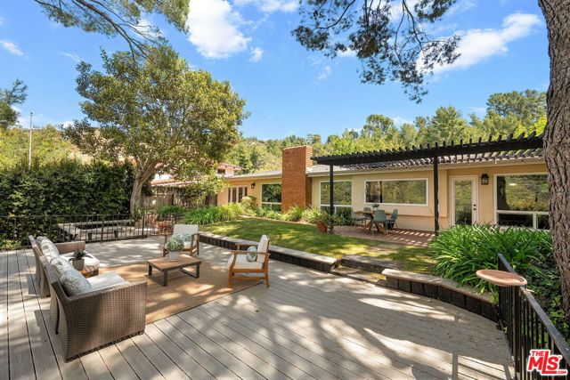 Nestled on a quiet dead end street, 2521 La Condesa Drive presents a rare opportunity to reimagine a classic 1969 Mid-Century Modern ranch. Spanning approximately 2,016 square feet, this single-story home sits on an oversized 26,270 square foot lot, offering endless potential for expansion, renovation, or redevelopment. The home features 3 bedrooms and 2 bathrooms, with a functional floor plan, generous living spaces, and large windows that invite in natural light and nature. True to its mid-century roots, the property showcases clean lines and a seamless indoor-outdoor flow. Enjoy beautiful mountain views from the property, along with a private jacuzzi perfectly positioned to take in the serene backdrop.Ready for a refresh, this is a unique opportunity to restore, or remodel in the desirable Mandeville Canyon location.