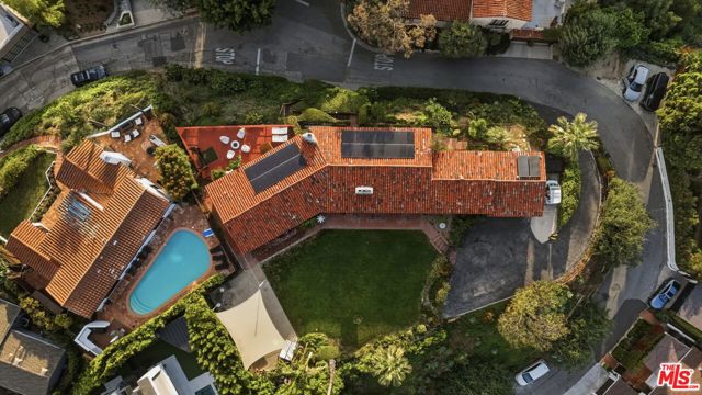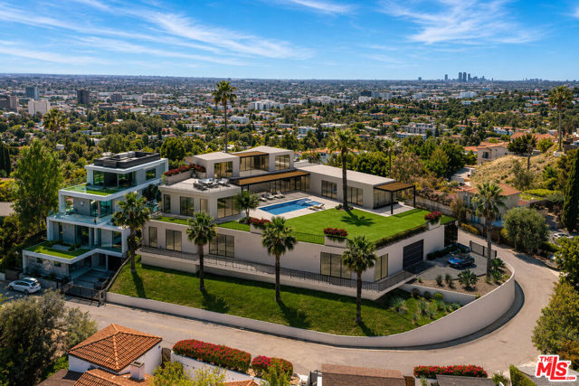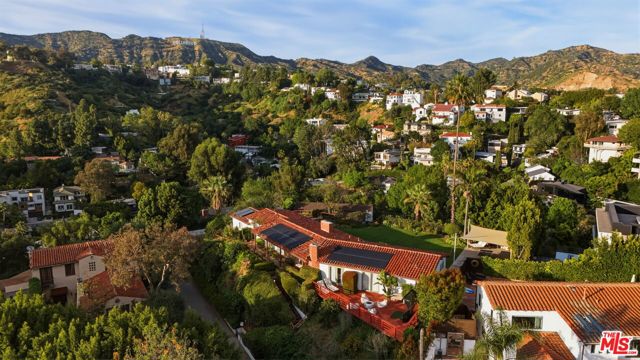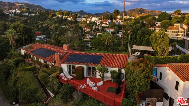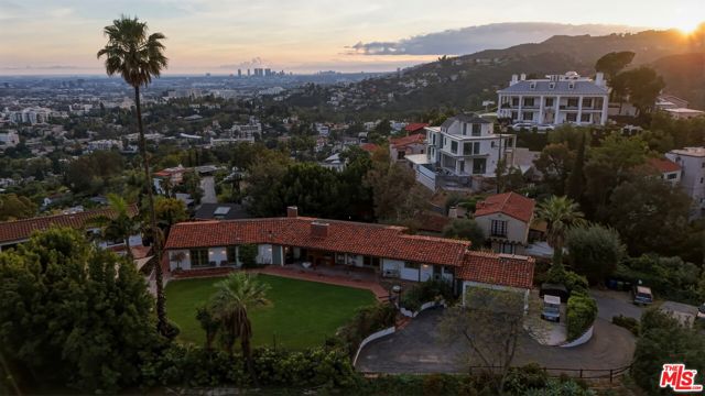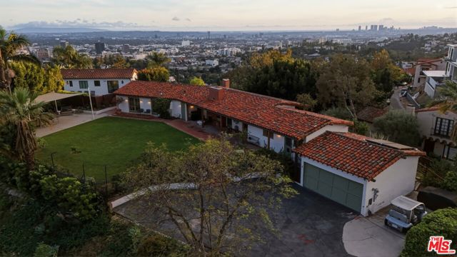 Prime development opportunity in the heart of Beachwood Canyon. This rare offering comes with fully approved RTI (Ready-To-Issue) plans and permits for a striking approximately 9,600-square-foot modern estate, along with the option of an exemption allowing for an additional 2,000 square feet of living space, creating an opportunity to build a truly significant architectural residence in one of Los Angeles' most iconic hillside enclaves. Perched atop a rare, mostly flat half-acre promontory, the property captures breathtaking, unobstructed panoramic views stretching from the Hollywood Sign to Catalina Island, with sweeping vistas that showcase the full majesty of the Los Angeles skyline and coastline. The existing 1950's California Ranch home enjoys extraordinary privacy as it's elevated above the neighbors. Additionally, as the property is located on a loop, there is minimal traffic, creating an exceptionally serene setting that is only minutes away from the city. The residence consists of three bedrooms and two full bathrooms plus office or flex space. All bedrooms have double doors that open to the exterior showcasing either the city and ocean views or the flat lawn and views of the Hollywood sign and surrounding nature preserve. The additional office also has access to the lawn for blending business and pleasure. The main bedroom contains an en suite and double closets. Additionally, the third bedroom has its own cozy fireplace. The home maintains original charm and character in the beautiful living room with a high beamed wood ceiling and hardwood floors. The central fireplace creates an intimate, relaxing space further enhanced with the remarkable city views. The dining room connects directly to the kitchen with two separate preparation tops and Spanish tile floors. The laundry room is conveniently located off of the kitchen. Outside, the front of the home and patio has its own stepped pathway leading down to the street, while in the rear, there is an exterior fireplace with accompanying gas BBQ grill facing the flat grass lawn and spectacular views of the Hollywood sign and hills. The approved plans have been thoughtfully designed to maximize the site's extraordinary 360-degree views, creating a dramatic modern estate that fully embraces its remarkable setting. Accessed via a private driveway, the offering becomes even more compelling with two APNs included, presenting the unique potential to develop two separate residences: an exceptional opportunity for builders, developers, or end users seeking to create a landmark compound in the Hollywood Hills. The existing residence allows the next owner to occupy immediately or move forward with the approved plans or explore alternative development possibilities.