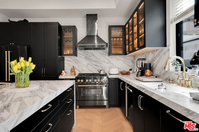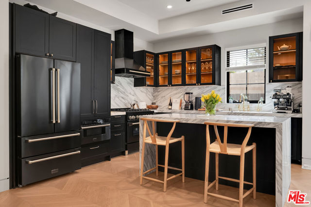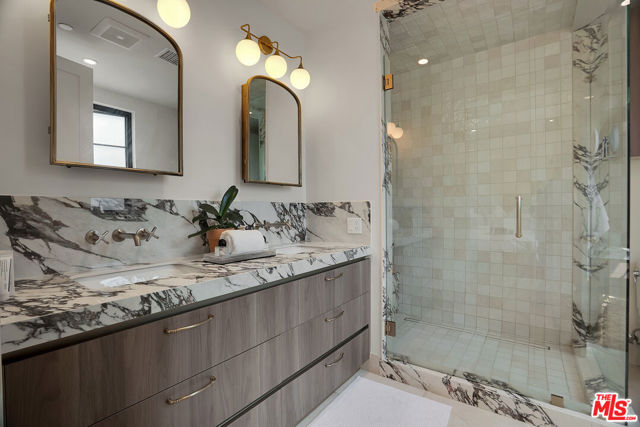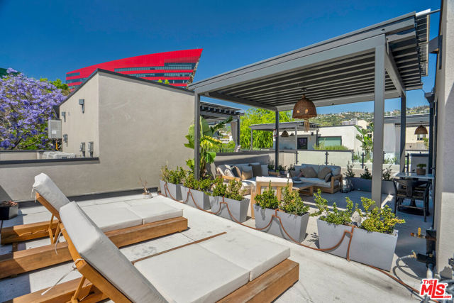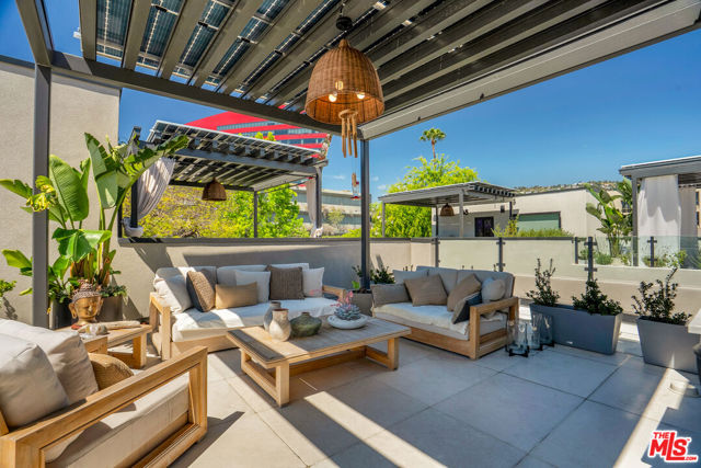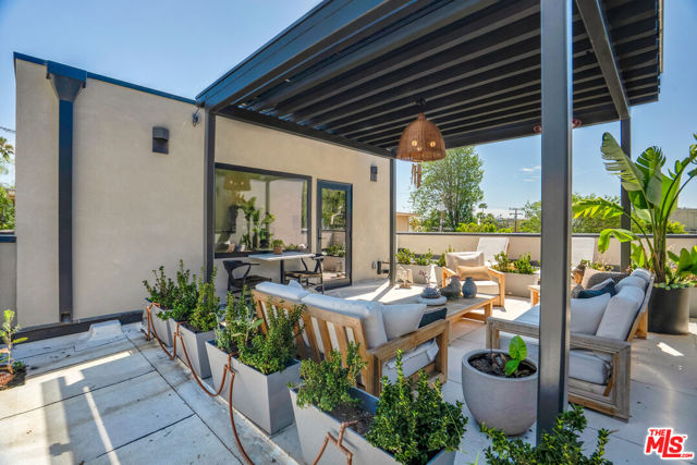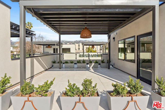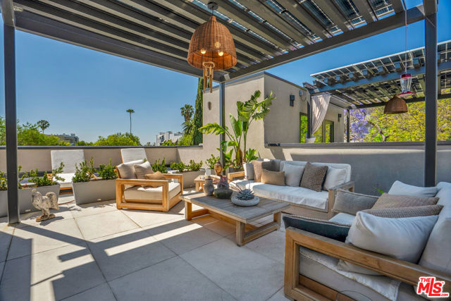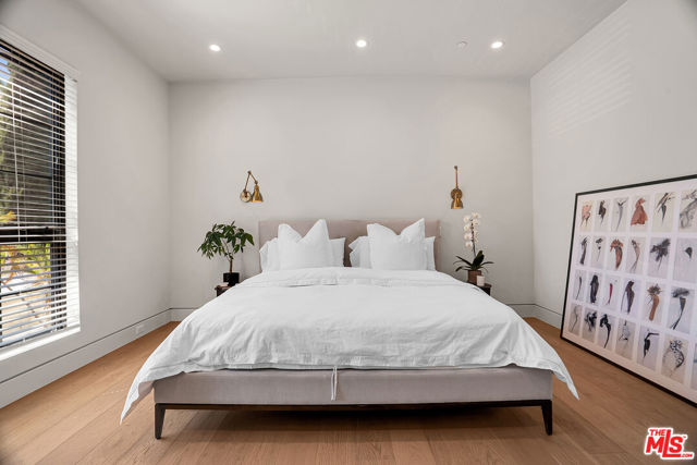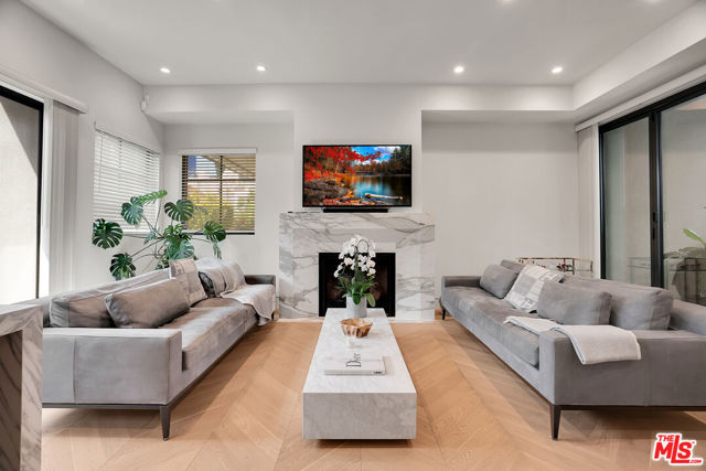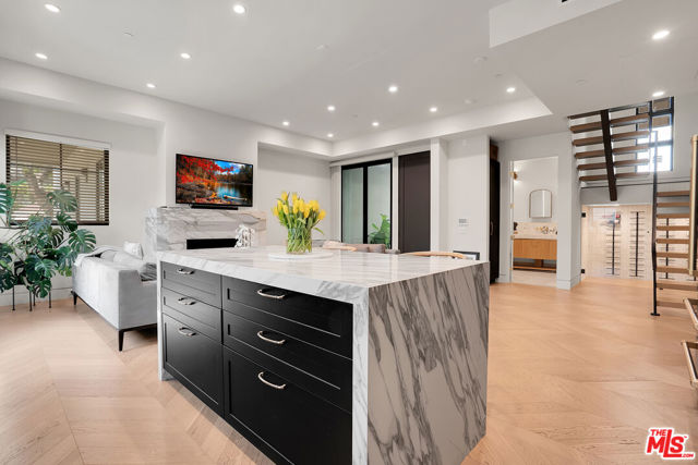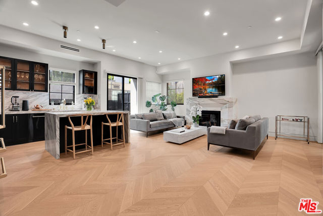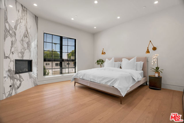Introducing a NEWLY CONSTRUCTED contemporary/modern townhouse (2025), ideally positioned on one of West Hollywood's most sought-after streets. This exceptional residence embodies a refined blend of timeless architectural design, elevated finishes, and modern luxury living, offering approximately 1,655 sq ft of thoughtfully curated living space. This private, gated home features 2 spacious bedrooms and 2.5 impeccably designed bathrooms. A dramatic foyer opens to a sprawling, light-filled open-concept floor plan designed to maximize natural light and volume. Soaring ceilings and expansive picture windows define the main living areas, where formal living and dining spaces are enhanced by sophisticated architectural details, ideal for both intimate gatherings and grand-scale entertaining with a wine closet and fireplace. At the heart of the home lies a state-of-the-art chef's kitchen, showcasing custom cabinetry, a sleek waterfall-edge island, premium appliances, and designer fixtures that deliver both culinary excellence and striking visual appeal. The second level hosts three beautifully appointed bedrooms and two luxurious bathrooms, each finished with bespoke materials. The primary suite serves as a true sanctuary, featuring dual vanities, an oversized walk-in shower, and a custom dressing room/closet with high-end built-ins and a fireplace. The rooftop deck elevates outdoor living with city views, creating the perfect backdrop for al fresco dining, morning coffee, or evening relaxation. Additional highlights include designer lighting, two side-by-side parking spaces in a gated garage with an EV charger, large dedicated storage, an in-unit laundry area, and paid solar panels. This turnkey modern masterpiece offers sophistication, comfort, and privacy-just moments from the finest shopping, dining, and amenities West Hollywood has to offer. Monthly HOA dues cover water and gardening. A truly exceptional offering in one of the city's premier locations. AN ABSOLUTE MUST-SEE.