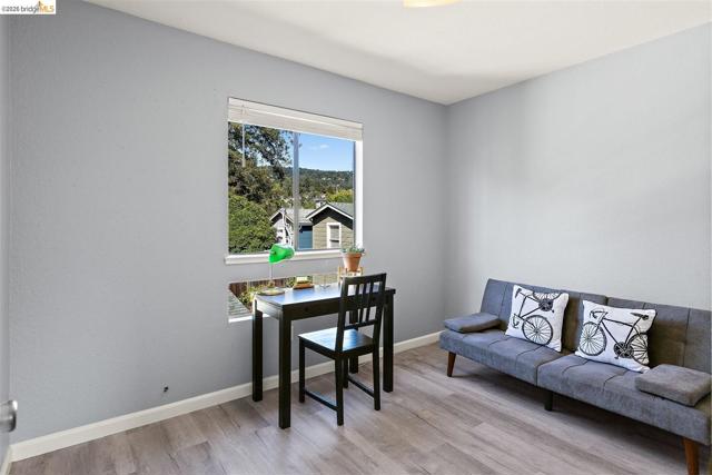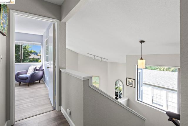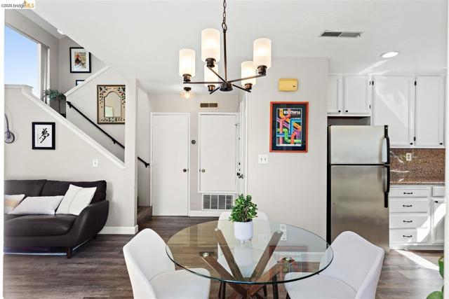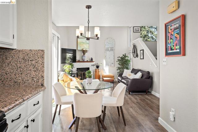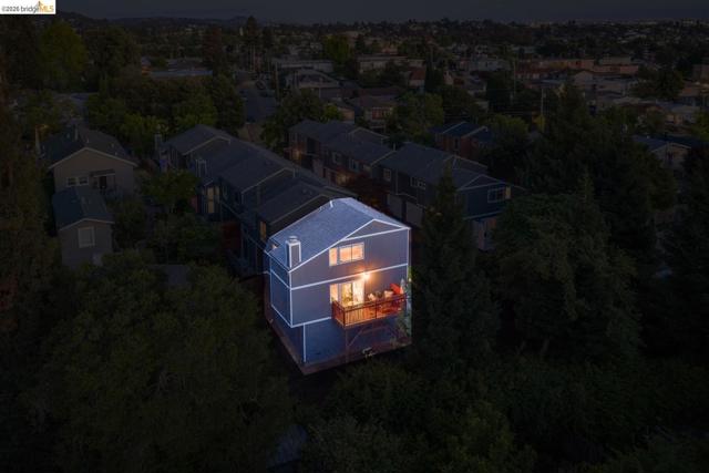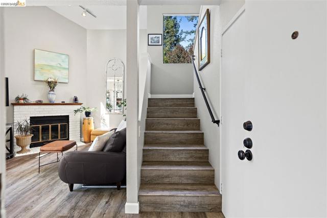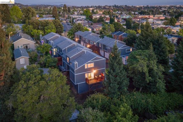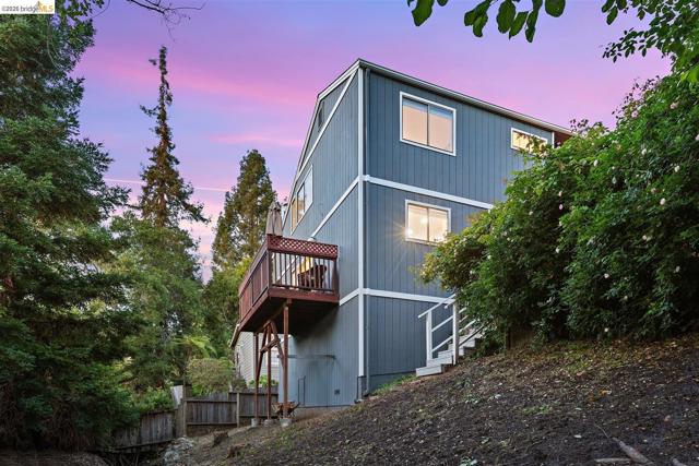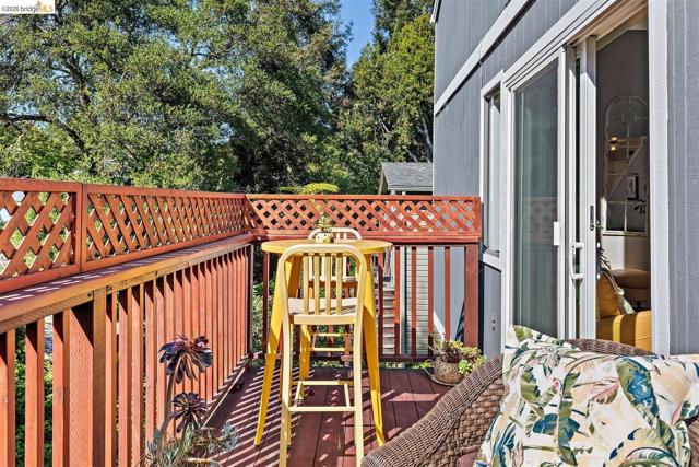 A rare end-unit sanctuary perched above a tranquil creek with sunset views, offering privacy and a serene, nature-filled setting. This light-filled 3BD/1.5BA, 1,310 SF residence lives like a secluded townhome in Oakland's vibrant Laurel District. The main level showcases soaring ceilings and abundant natural light, creating an airy living and dining space anchored by a cozy fireplace. Sliding glass doors open to a spacious redwood deck - perfect for morning coffee or effortless entertaining. The updated kitchen features generous cabinetry, ample prep space, and stainless steel appliances, seamlessly connecting to the dining area. Fresh interior paint and durable waterproof plank flooring enhance the home's refined, move-in-ready appeal. Upstairs, well-proportioned bedrooms offer a peaceful retreat. Additional highlights include in-unit laundry, an attached garage, and exceptional storage space including a LARGE under-home area. Set within a well-maintained community with low HOA dues, just moments from Laurel District shops, cafes, parks, and commuter routes - this is where convenience meets quiet luxury. WEBSITE: 3687maple9.com | OPEN HOUSE: SAT & SUN, APRIL 25-26, 1-4PM