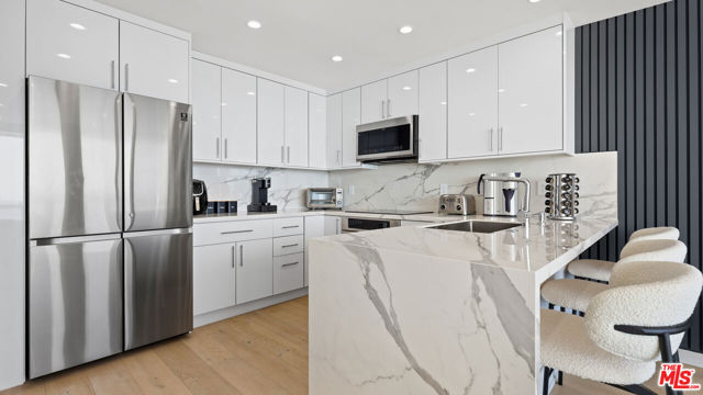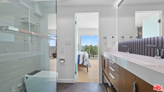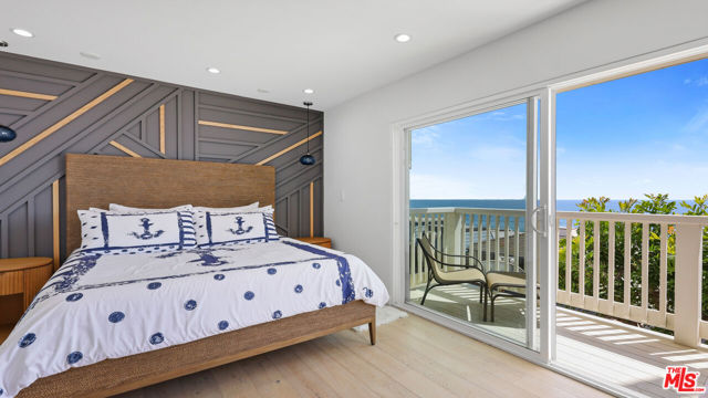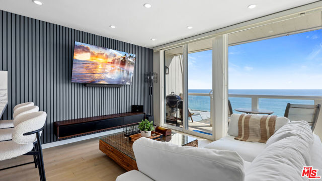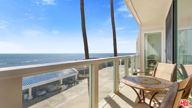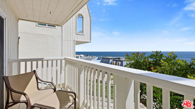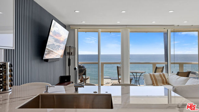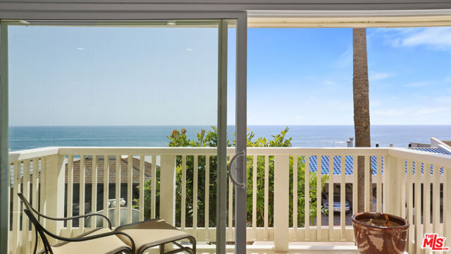 Commanding a premier position above the sand in Malibu's iconic Malibu Bay Club, this beautifully updated 2-bedroom, 3-bath oceanfront residence offers extraordinary views of the Pacific from both levels. Floor-to-ceiling glass opens to a private oceanfront terrace, creating a seamless indoor-outdoor experience and the feeling of floating above the water. The thoughtfully designed interior features wide-plank wood flooring, refined white cabinetry, stone countertops, and stainless steel appliances, all enhanced by abundant natural light. The open-concept layout is both elegant and functional, perfectly suited for relaxed coastal living and refined entertaining. Downstairs, two ocean-facing bedroom suites offer comfort and flexibility, each with updated ensuite baths and generous closet space. The secondary bedroom includes an adjoining office space, ideal for remote work or a quiet retreat, all set against a stunning coastal backdrop. Located within a gated community with a pool, spa, and direct beach access, this residence offers effortless Malibu living minutes from world-class surf, sandy beaches, and the shops and dining at Trancas Market.