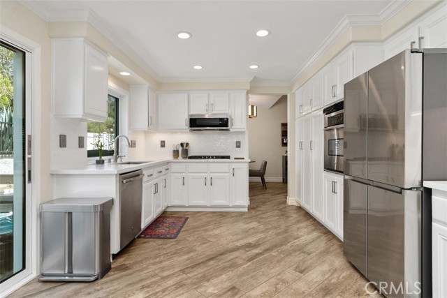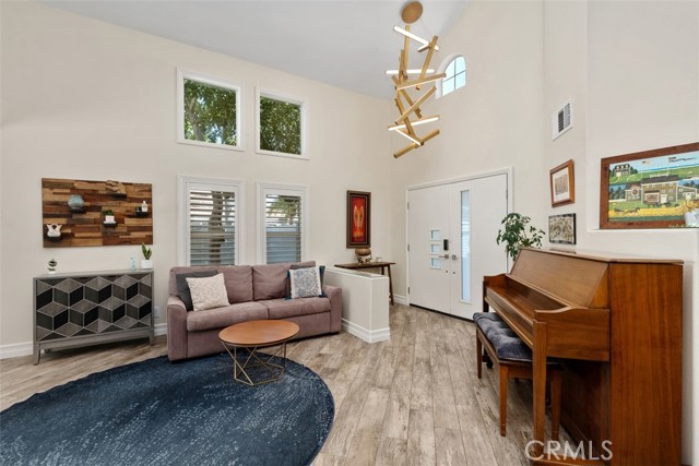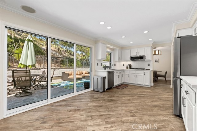 Welcome to this beautifully upgraded 4-bedroom home offering space, style, and comfort in all the right places! With all bedrooms conveniently located upstairs, 2.5 bathrooms, and approximately 2,000 square feet, this home is designed for modern living. Step through the double door entry and be greeted by soaring ceilings and an abundance of natural light. The main level features stylish wood flooring throughout and offers both an inviting living room and a spacious formal dining room—perfect for hosting gatherings. The formal dining room includes a slider to the backyard creating an indoor-outdoor flow. The updated kitchen is a true standout, showcasing quartz countertops, white painted cabinetry, a designer tile backsplash, and stainless steel appliances. The kitchen opens to the cozy family room, complete with a charming fireplace. A newly added “Sky Wall” or, tri-panel patio doors, create a seamless blend of indoor and outdoor living, ideal for entertaining and everyday living. Step outside to the low-maintenance backyard featuring a combination of hardscape and turf, along with multiple seating areas—perfect for relaxing or hosting friends and family. Downstairs also includes a powder bathroom, laundry room, and direct access to the three-car garage. Heading upstairs, you’ll find a modern staircase leading to all four bedrooms. The primary suite offers a private ensuite bathroom featuring a separate tub and shower, dual pedestal sinks, and three closets. The three additional bedrooms are generously sized, and the secondary bathroom includes a single sink vanity and tub/shower combination. Additional highlights include plantation shutters throughout and owned solar, providing energy efficiency and long-term savings. Located in a desirable community with low taxes and HOA dues, and just minutes from award-winning schools, shopping, and dining—this home truly has it all. Don’t miss your opportunity to make this one yours—schedule your private tour today!