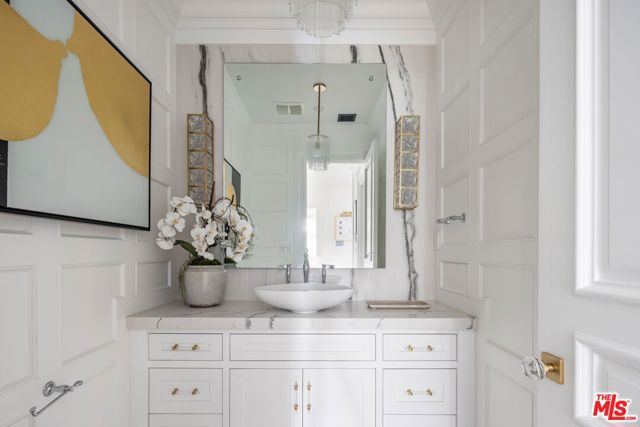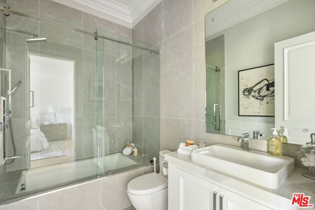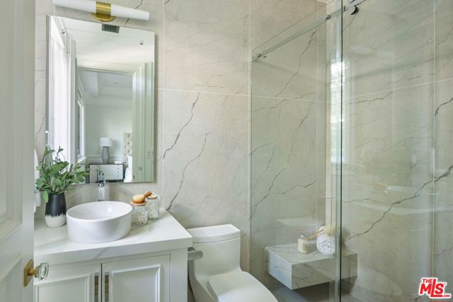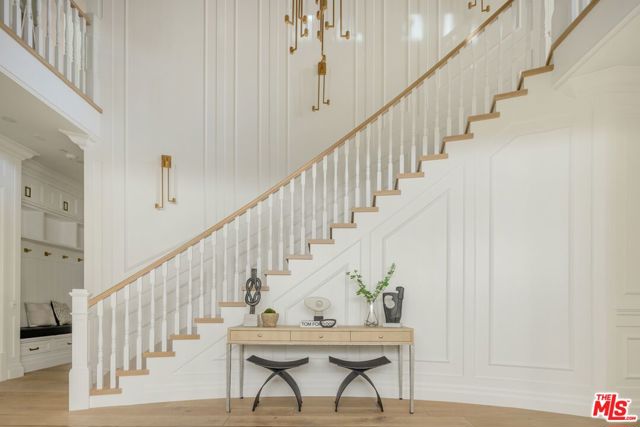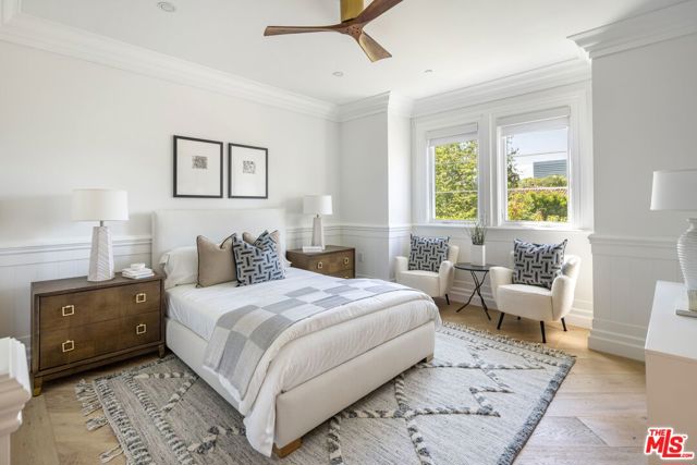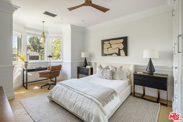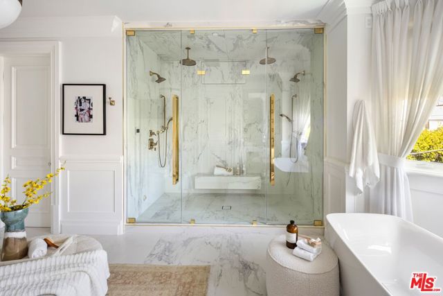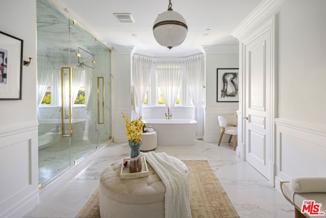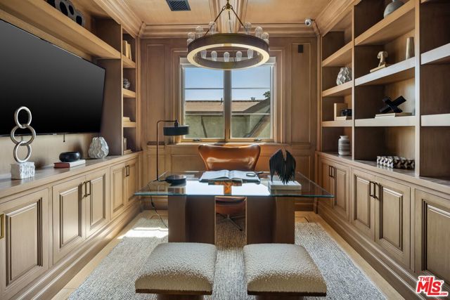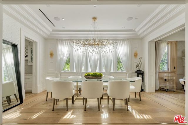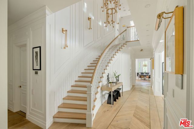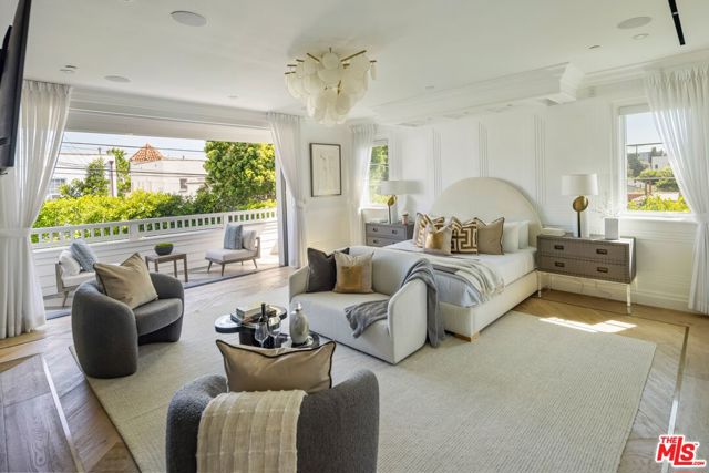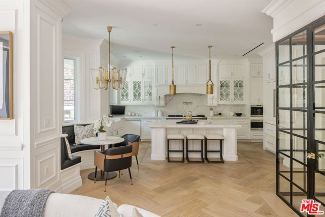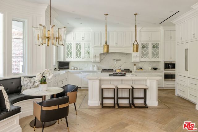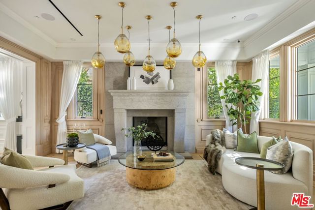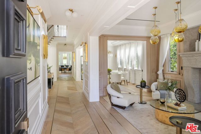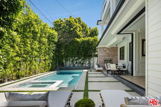 A striking modern Cape Cod in the heart of Beverly Grove, where timeless architecture meets refined, design-forward living. Set behind a clean-lined facade with crisp white brick, bold black accents, and classic detailing, the home delivers immediate curb appeal with a presence that feels both sophisticated and enduring. Step inside to a dramatic, light-filled interior where soaring ceilings and defined architectural lines create a sense of scale and flow. The main living spaces unfold seamlessly, designed for both elevated entertaining and effortless daily living. At the center of the home, a chef's kitchen appointed with Sub-Zero and Wolf appliances, custom cabinetry and an oversized island anchors the space opening to a warm, inviting family room framed by walls of glass. The transition outdoors is seamless, revealing a private backyard retreat curated for the Los Angeles lifestyle, complete with a white-pebble pool and spa, outdoor fireplace and multiple lounge and dining areas. The main level also features a home theater, curated wine room, guest suite, and powder room thoughtfully designed to balance function with luxury. Upstairs, additional en-suite bedrooms and a dedicated office are complemented by a primary suite that serves as a true sanctuary, offering designer closets, a private balcony, and a spa-inspired bath with soaking tub and oversized shower. Every detail has been carefully considered from smart home integration and multi-zoned climate control to integrated security and modern systems creating a residence that is as effortless as it is refined. Located just moments from The Grove, Beverly Center, and West Hollywood's most sought-after dining and retail, this is a rare offering that captures the essence of Beverly Grove living timeless, polished and built to impress.