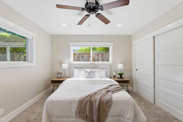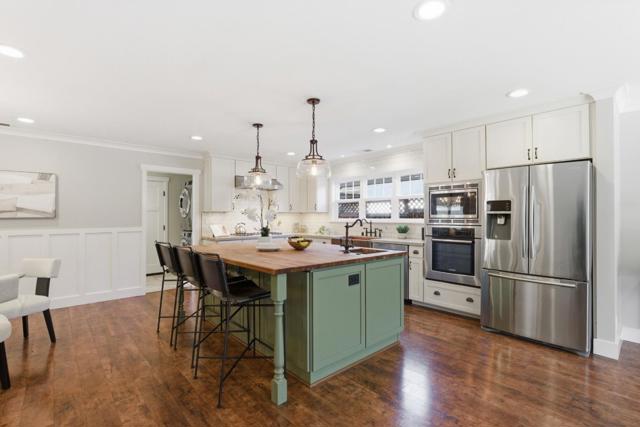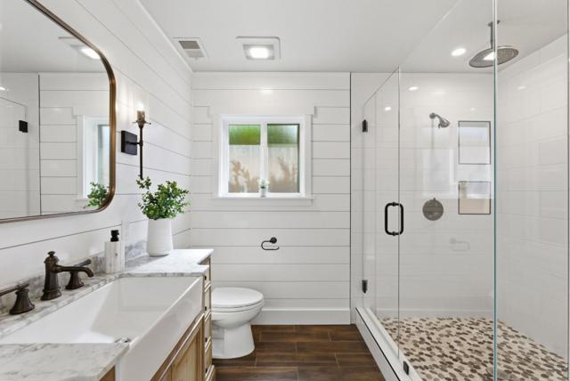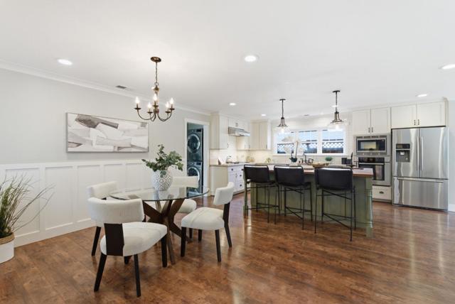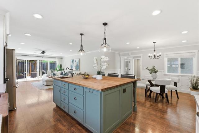 Located in a quiet Cambrian pocket, this fully reimagined home blends modern farmhouse warmth w/clean California livability. A wide paver driveway & curated landscaping set a composed first impression, leading into light-filled interiors w/wide-plank flooring & effortless open-concept flow. The chef's kitchen is the centerpiece: butcher block island w/prep sink, stylish pendant lights, granite counters, copper farmhouse sink, subway tile backsplash, white shaker cabinets, gas cooktop w/hood, Bosch/Samsung appliances & pantry. Dining area w/wainscoting adds casual refinement. Expansive family room anchored by fireplace & framed by sliding glass doors. Primary suite offers a calm retreat w/Elfa custom closet & spa-like bath w/warm wood vanity, matte black fixtures, shiplap detail & custom shower w/dual heads + rainfall & niche. 3 spacious guest beds w/closet systems & a remodeled full bath. A separate vaulted living space offers versatility. Backyard extends living w/custom gazebo, lawn & flowering landscaping. Extensive upgrades: PEX plumbing, owned solar, central AC, tankless water heater, water softener, filtration system, half-bath, recessed lights & EV power. Prime Cambrian location near top schools, shopping, dining, parks & major freeways. A true turnkey opportunity awaits.