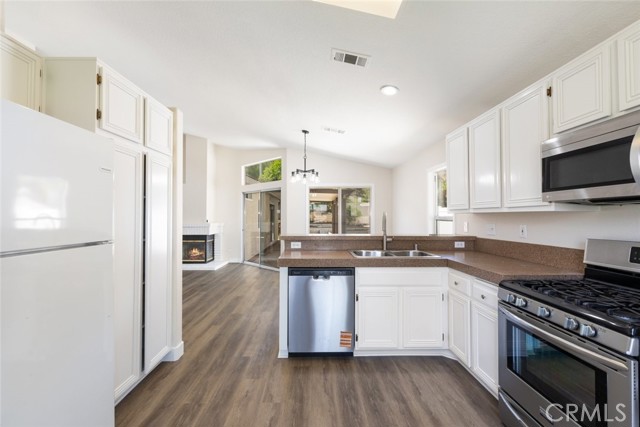 Welcome to one of the most desirable single story homes in beautiful Temescal Valley, perfectly positioned against the breathtaking backdrop of the Cleveland National Forest. Recently remodeled and truly turnkey, this stunning residence is ready for its next proud owner. Step inside to find brand new luxury vinyl plank flooring, upgraded baseboards, decorative window casings, fresh interior paint, and stylish new lighting fixtures with ceiling fans throughout. The beautifully refreshed kitchen features refinished cabinetry, elegant Corian countertops, and stainless steel appliances, creating the perfect space for cooking and gathering. The remodeled primary bathroom adds a touch of modern comfort, while the inviting family room with a cozy fireplace is the ideal place to relax on chilly evenings. Outside, the private backyard is designed for enjoyment with two covered sitting areas perfect for entertaining or unwinding in the cool afternoon breeze. Additional highlights include fresh exterior paint, vinyl and block wall fencing, and a spacious three car tandem garage. Best of all, with low association dues and low taxes, this exceptional home offers comfort, style, and affordability all in one.