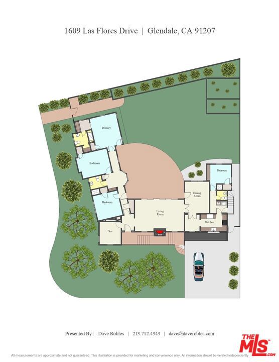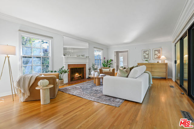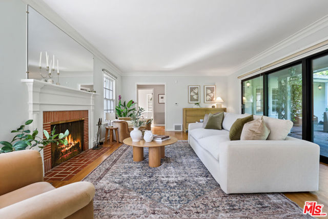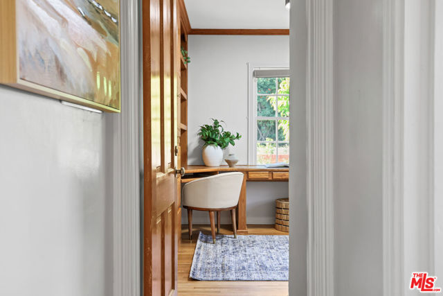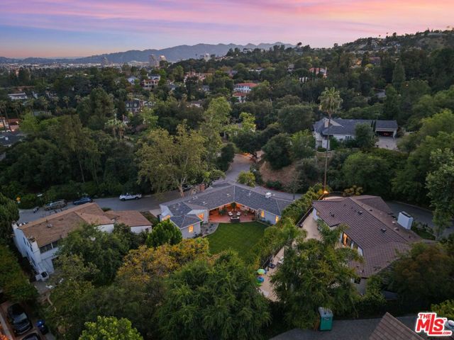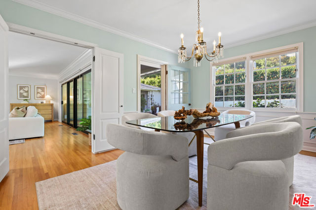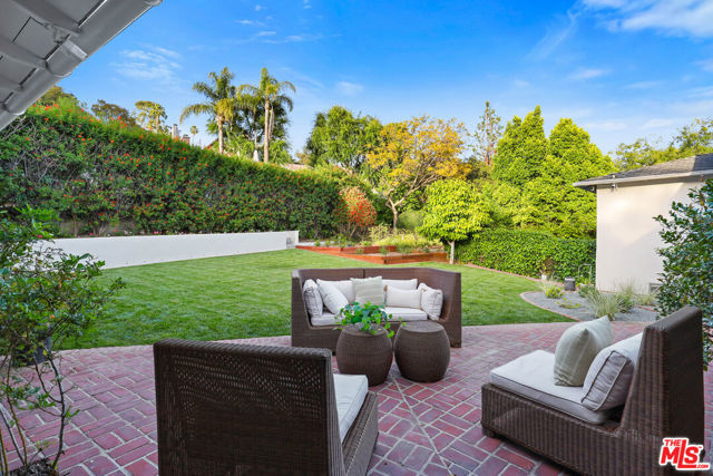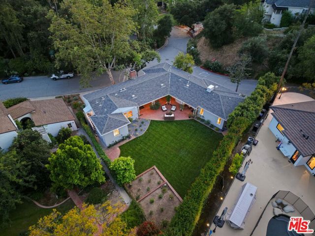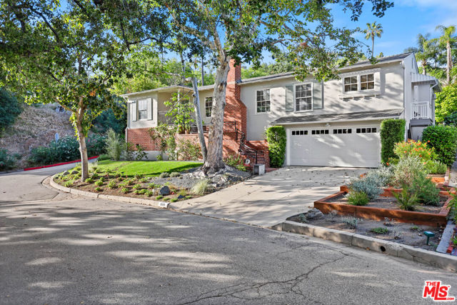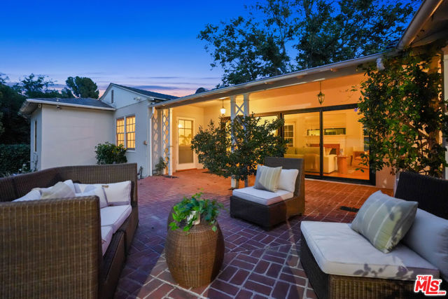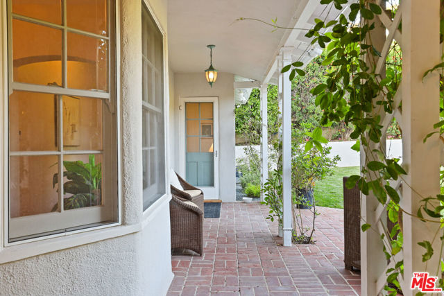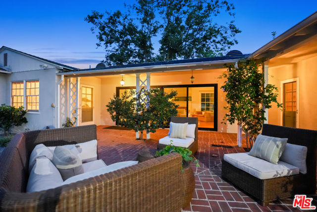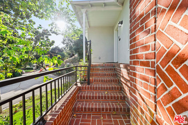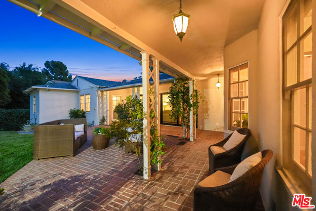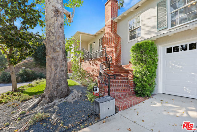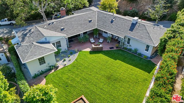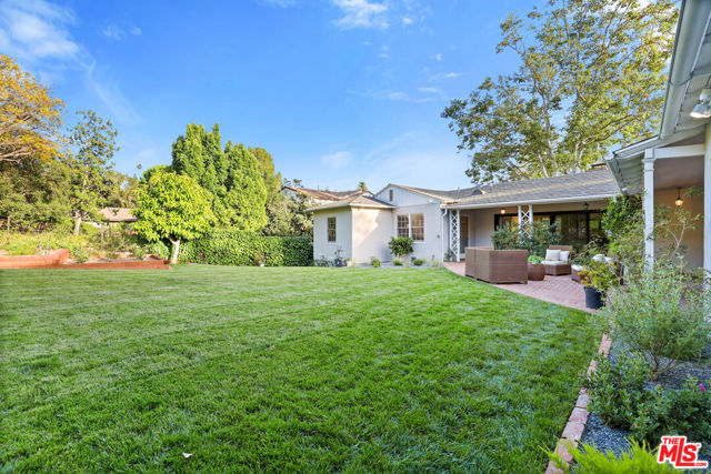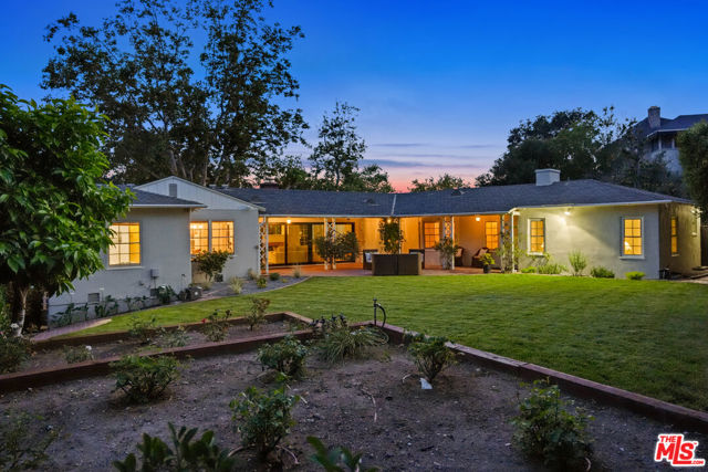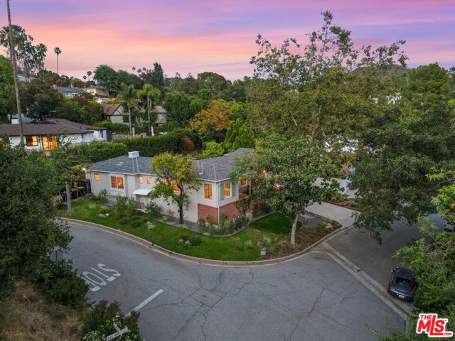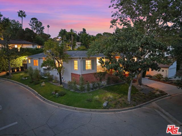 Tucked into the hills of Glendale's Royal Canyon, 1609 Las Flores is a beautifully done1937 bright and airy home set on a 10,000 square foot mostly flat lot, with the large beautifully landscaped backyard as its focal point. The home is set prominently above the street on a quiet corner overlooking the immediate neighborhood. This sprawling single story home takes full advantage of the park-like grounds as multiple public and private rooms open to it. The living room centers on a brick fireplace and a wall of sliding glass doors opening to the covered patio and the yard beyond. The dining room sits just off this space, with corner windows, a coved ceiling, and a built-in cabinet, along with direct access to both the living room and the yard. The kitchen has been updated with stone countertops, stainless steel appliances, a subway tile backsplash and glass-front upper cabinets. The window over the sink looks out over the neighborhood. A primary suite is placed along the backyard and opens directly to it for your morning latte. It also features a recently renovated bathroom with a walk -in closet and dressing area Two additional bedrooms and the den are off the light and bright hallway. The den is finished with a wall of shelving gazes over the tree lined street below. The 4th bedroom at the corner of the home features built-ins that work well as an office or library if needed. The backyard functions as an extension of the house with its covered brick patio just off the living room. Beyond it, the yard opens to a broad stretch of lawn, bordered by mature hedging and layered planting adds depth without interrupting the space. The placement of the house gives the yard a sense of privacy while keeping it open. Set within the Royal Canyon neighborhood of Glendale, the home sits in a quiet pocket known for its setting and access to nearby hiking trails, while still close to Glendale's shops and restaurants.